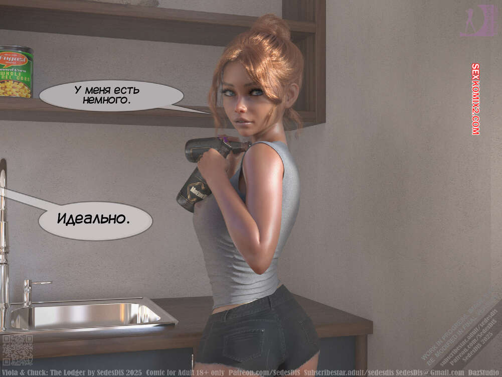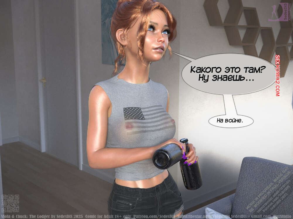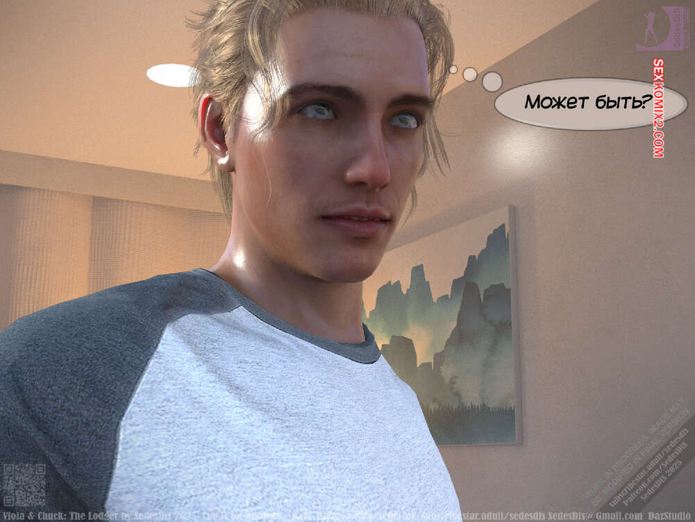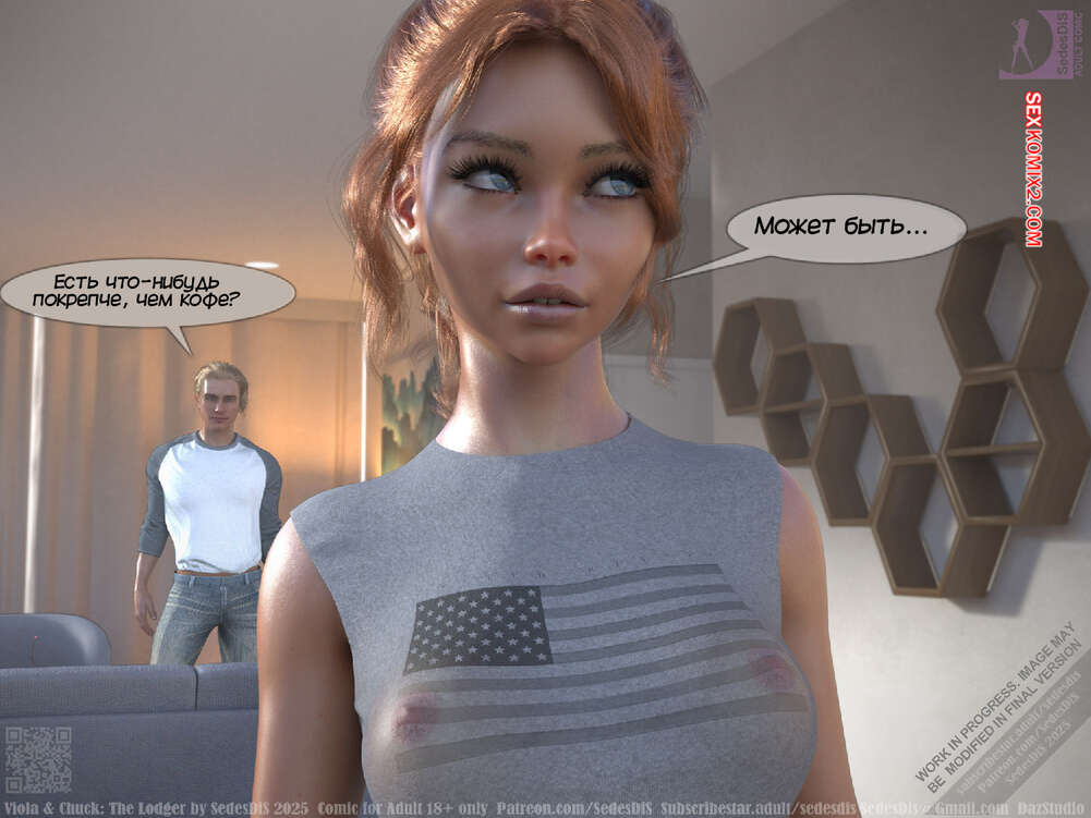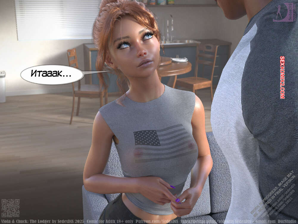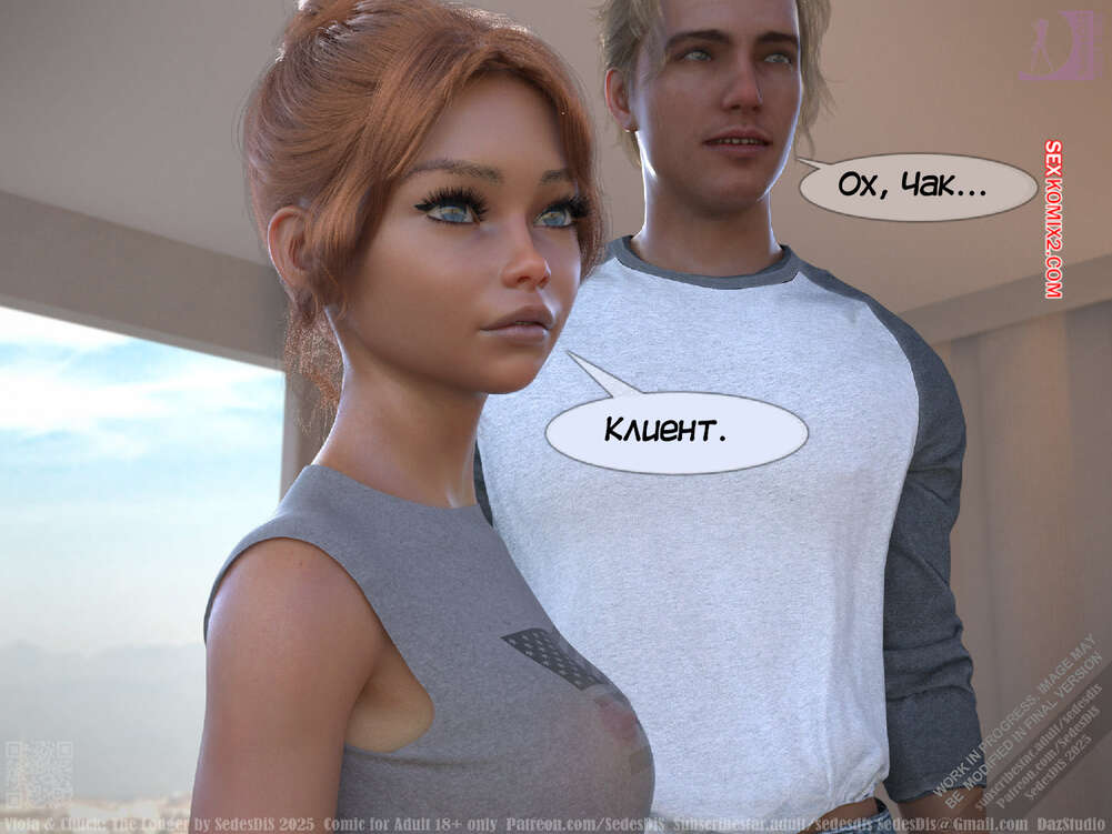 Порно комикс Виола и Чак. Жилец. Viola and Chuck. The Lodger. SedesDiS Виола живет со своим мужем и к ним на несколько дней приехал старый приятель Чака, Мартин. Мужчина познакомил любимую с другом, после чего оставил их наедине и поехал на работу.