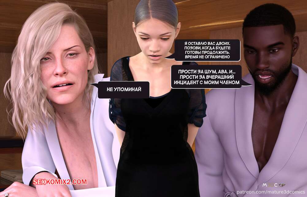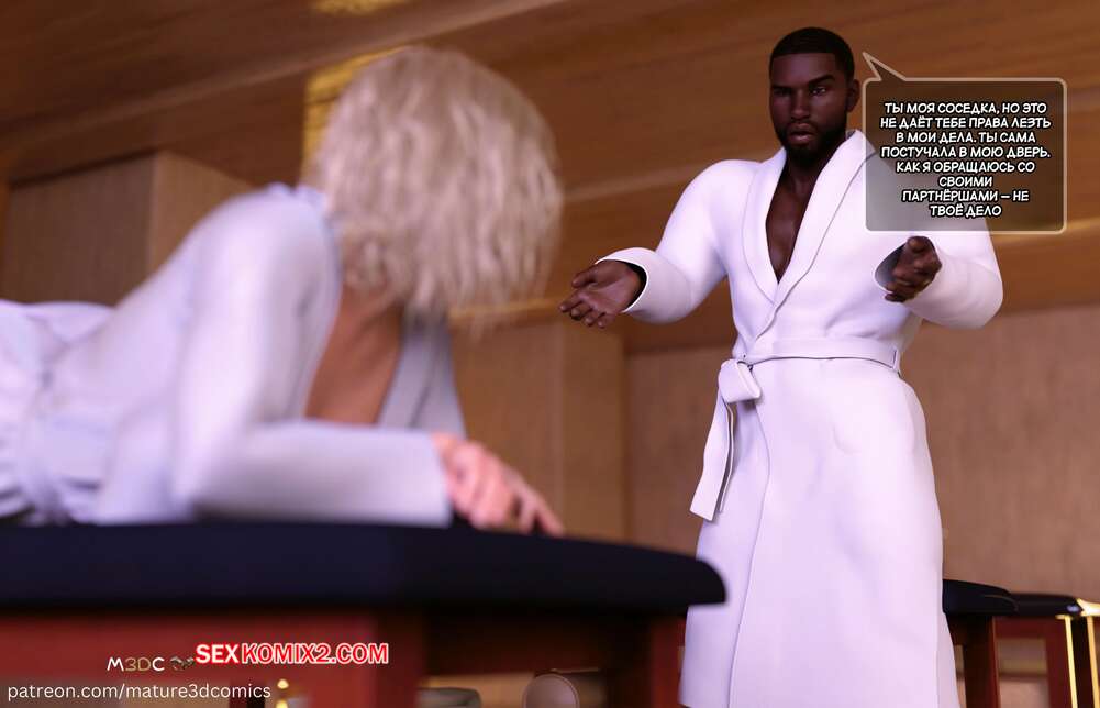 Порно комикс Грязный сосед. Часть 3. Naughty Neighbor. Mature3DComics Горячая милфа решила расслабитсья и пошла на массаж, где ее массажистом оказался темнокожий сосед. Он заметил неловкость у красотки и достал перед ней свой член, соблазняя ее на трах.