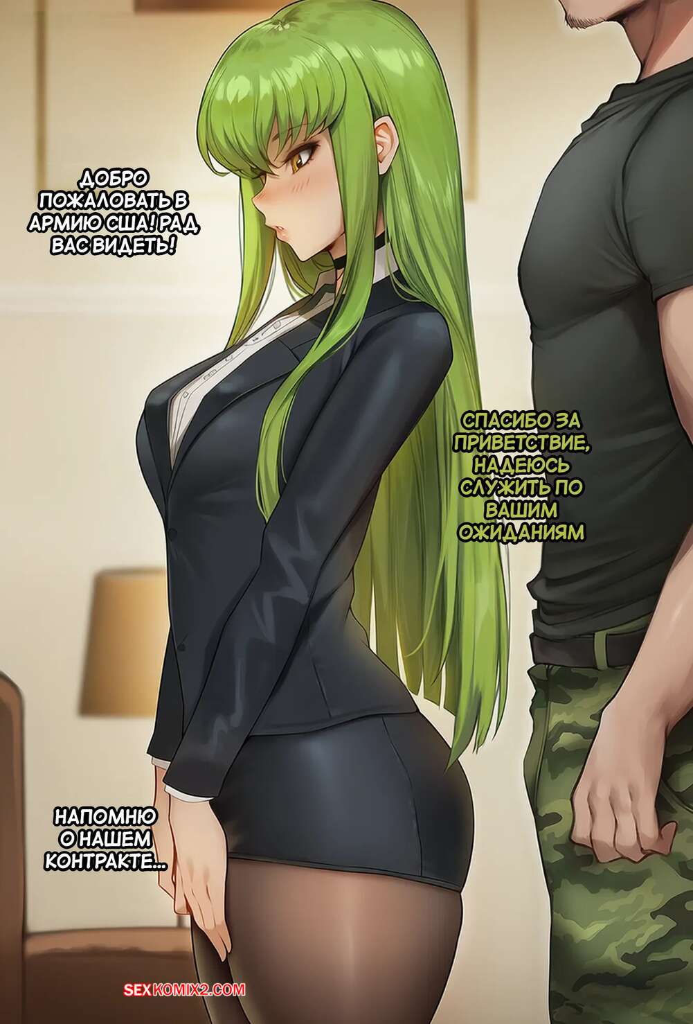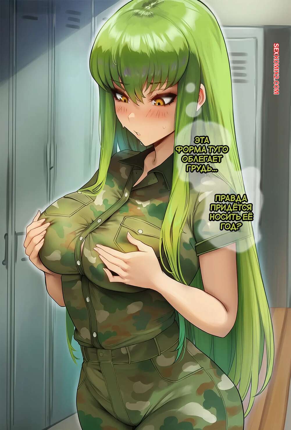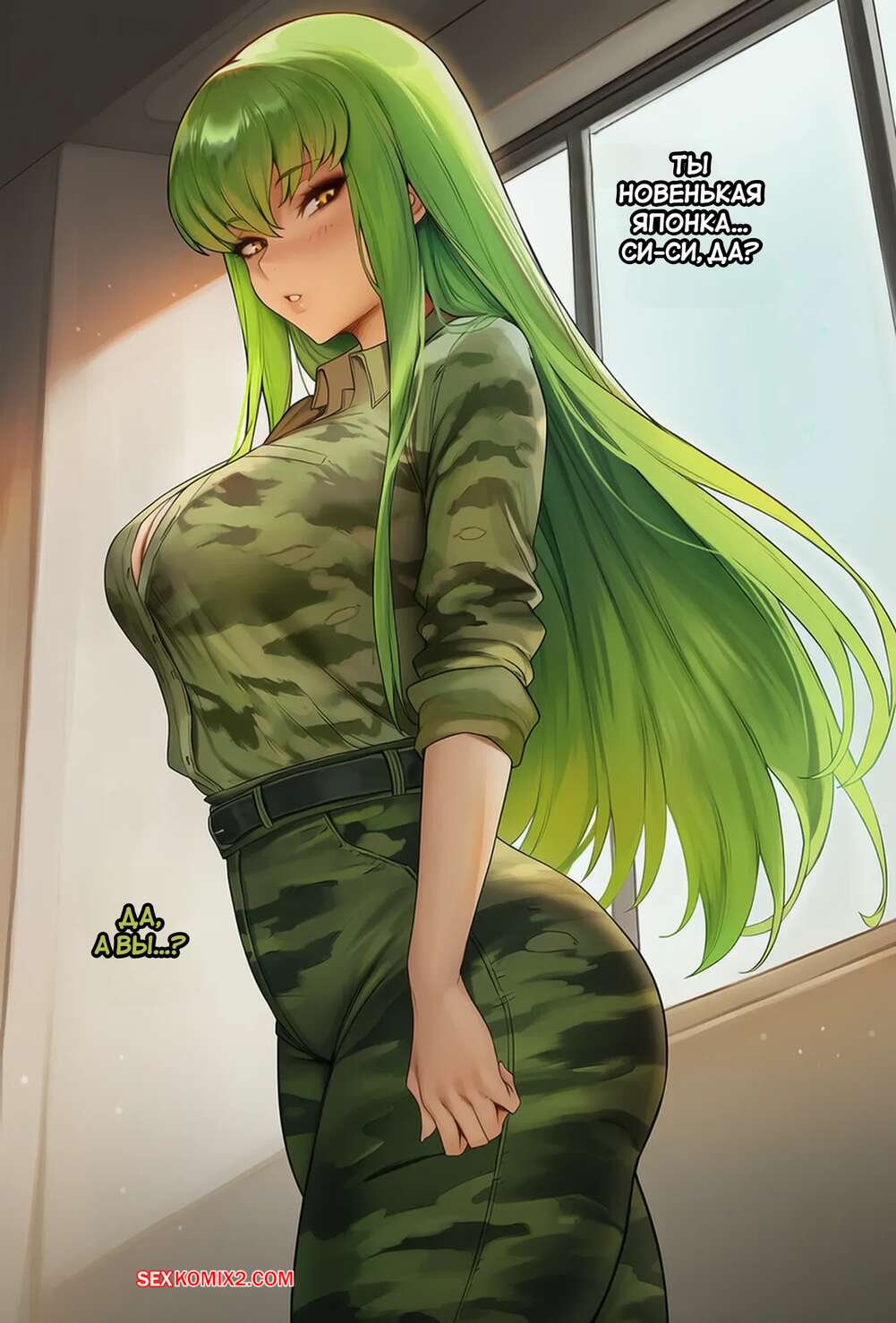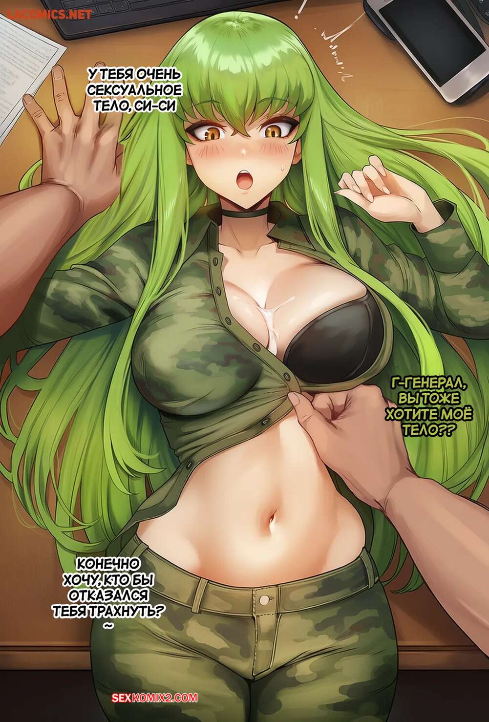 Порно комикс Военная подготовка. C.C. Military Training. Akyoiii Красотка попала в армию, где два командира взялись за ее подготовку. Они поставили девушку на колени и дали ей отсосать свои большие хуи, после чего хорошенько выебали ее пизденку.