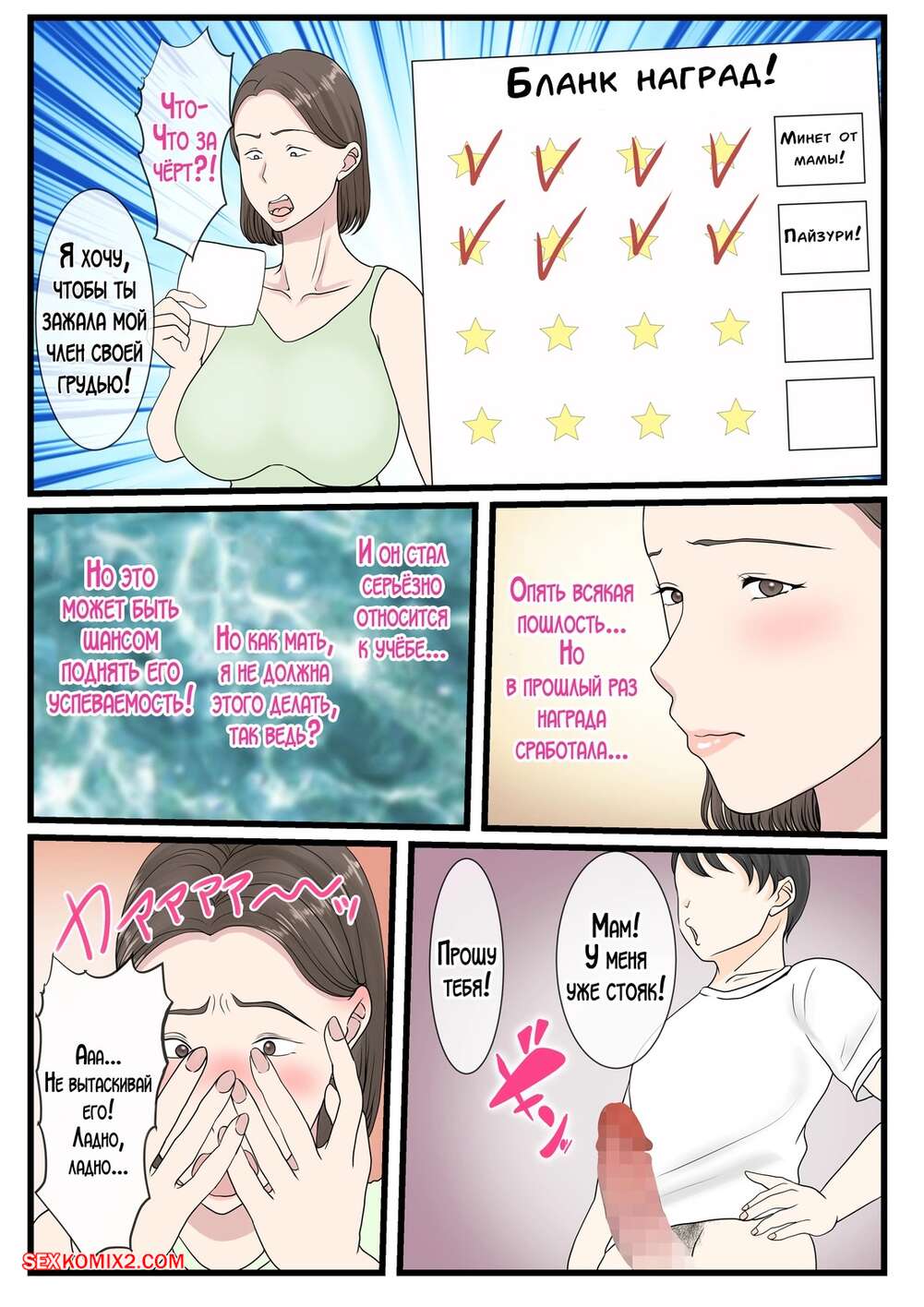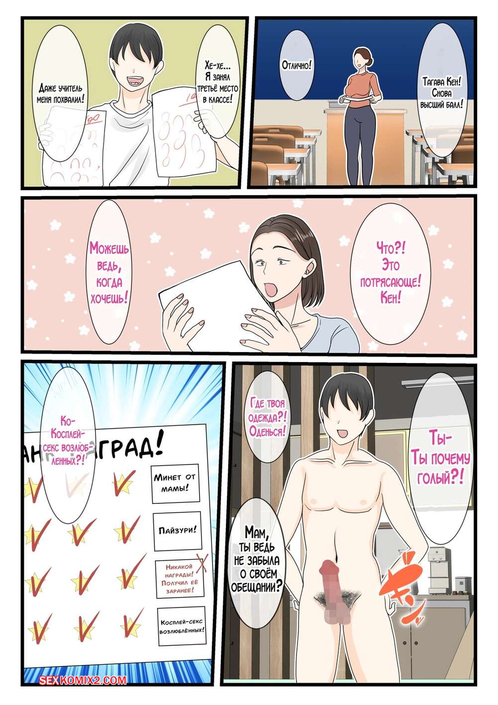 Порно комикс Хочу все мамины награды. Benii Kenkyuujo Молодой парнишка не может устоять перед шикарным телом мамочки и ищет возможность ее соблазнить. Красотка не может устоять и раздвигает ножки перед сыном, чтобы он ее выебал.