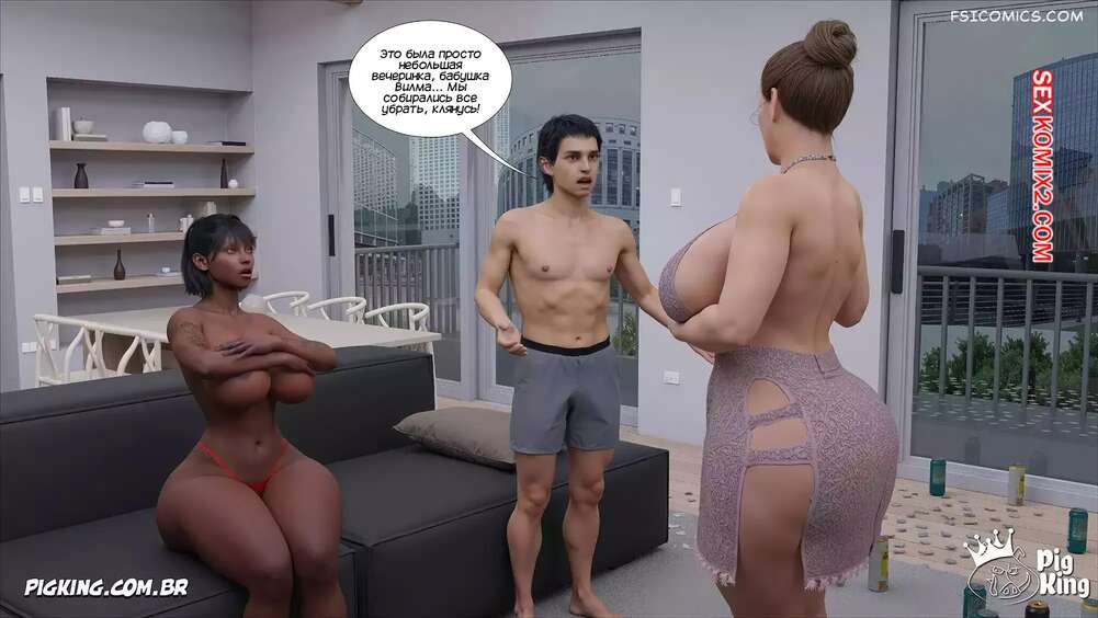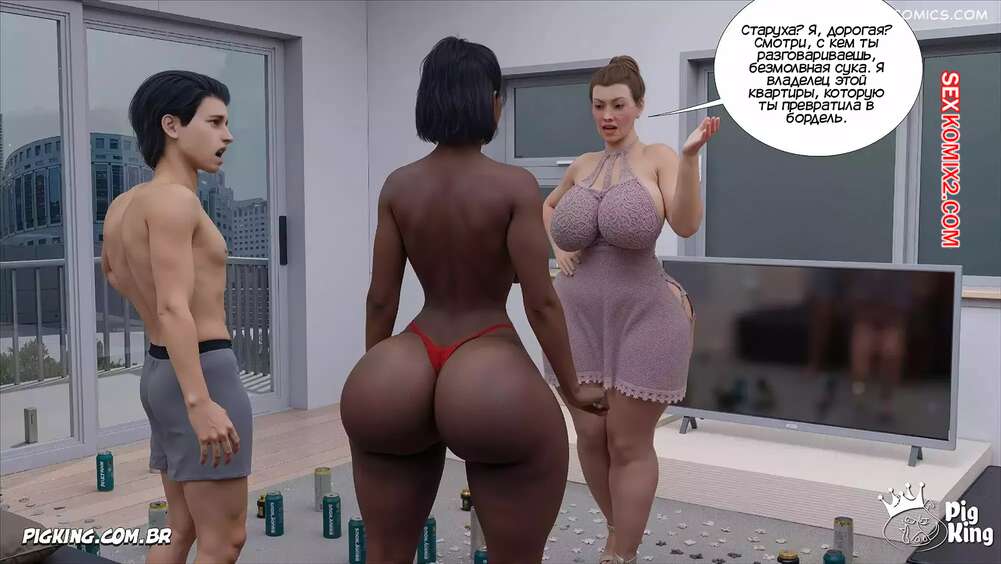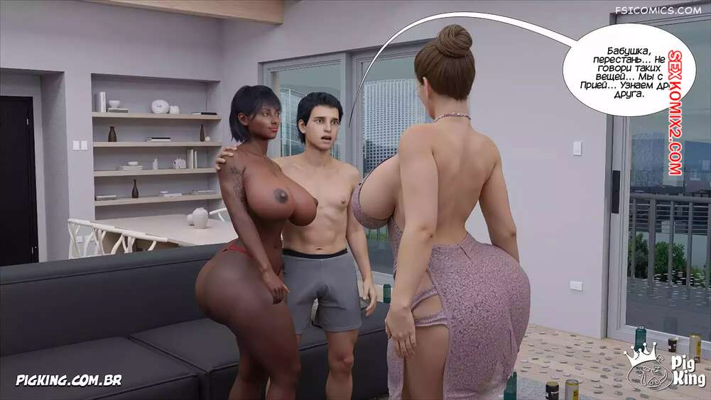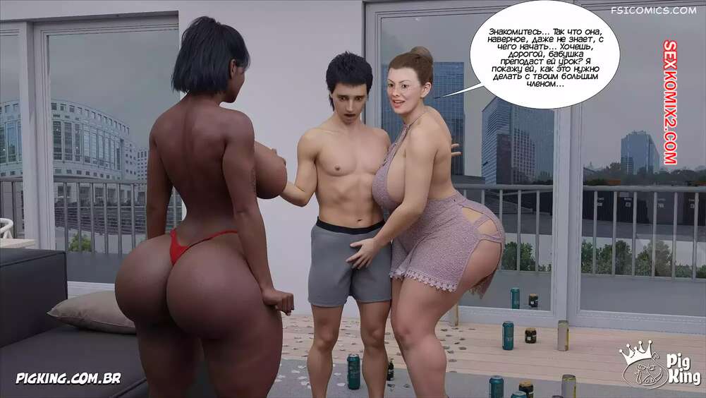 Порно комикс Бабушка. Часть 34. The Grandma. CrazyDad3D Вилма вернулась домой и спалила там своего внука в постели с темнокожей девушкой. Она сперва стала ругаться, но в итоге соблазнила моложешь на страстный групповой секс.