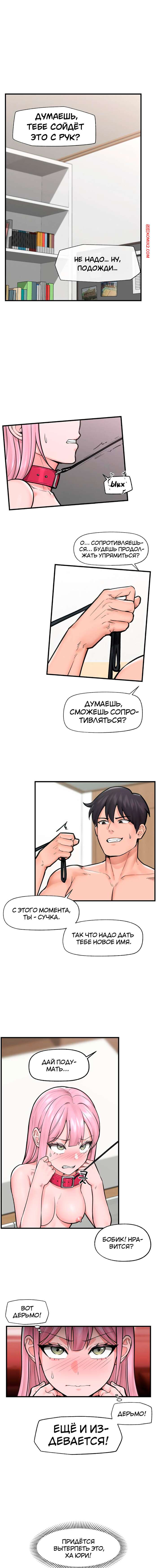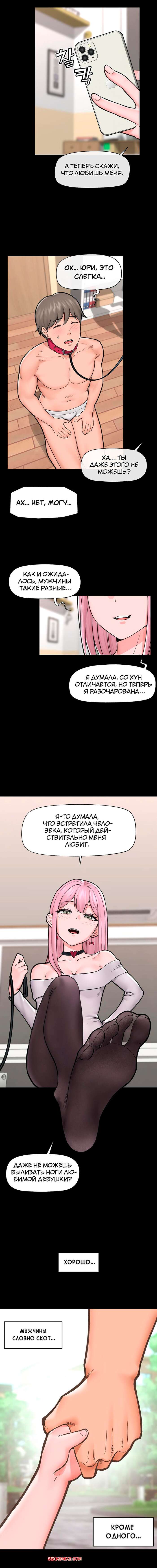 Порно комикс Гипнотический Охранник. Без цензуры. Часть 11 Парнишка оттрахал горячую красотку и решил сделать из нее полноценную свою шлюху. Он надел девушке ошейник и поставил ее на колени перед собой, после чего стал сувать его в ротик ноги и свой большой член.
