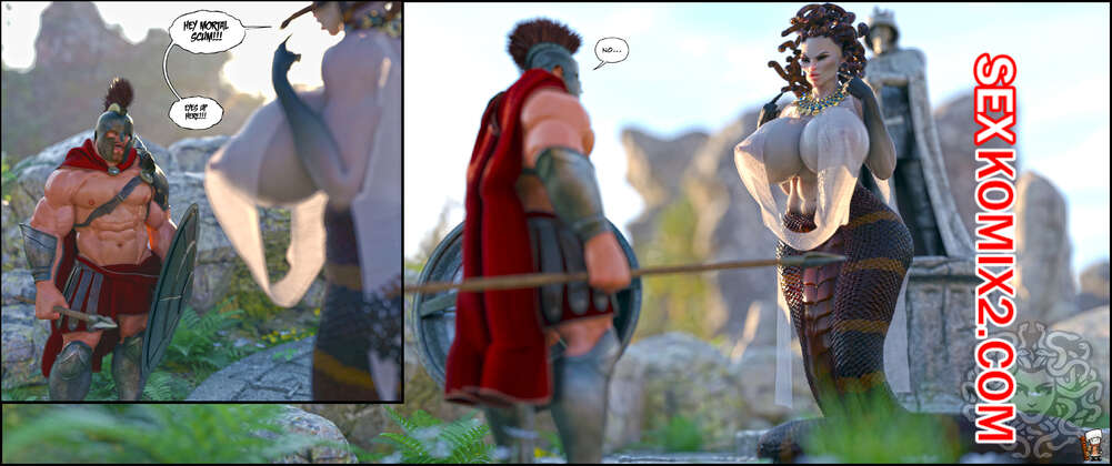 Порно комикс Queen Of The Gorgans. GashousesushiArt. Медуза Горгона позирует перед темнокожими парнями, желая пошалить. Она отсосала их большие хуи, после чего раздвинула ножки и дала себя выебать в пизду и задницу.
