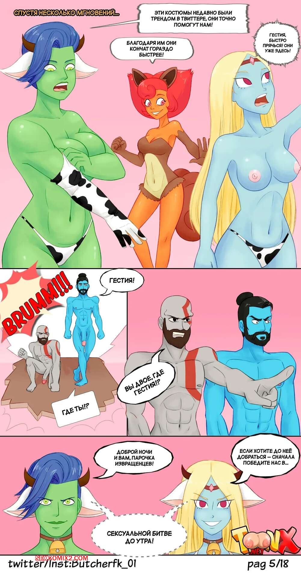 Порно комикс Гестия. Hestia. Butcherfk 01. Аппетитные красотки с шикарными телами обожают трахаться. Они позируют перед своими дружками и соблазняют их аппетитными формами, после чего сосут их большие хуи и дают себя выебать.