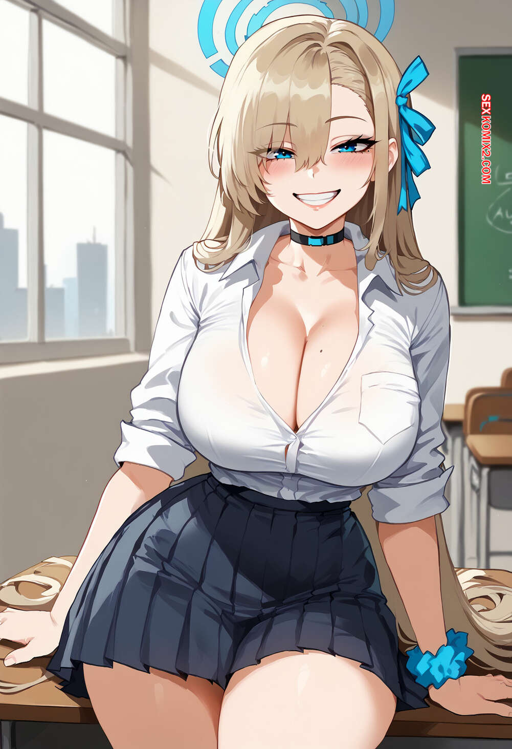Порно комикс Asuna Ichinose x BBC 2. Floxin Горячая блондинка осталась в классе с темнокожим парнем и стала его соблазнять. Сучка встала на колени и отсосала хуй парня, после чего раздвинула ножки и дала себя выебать.