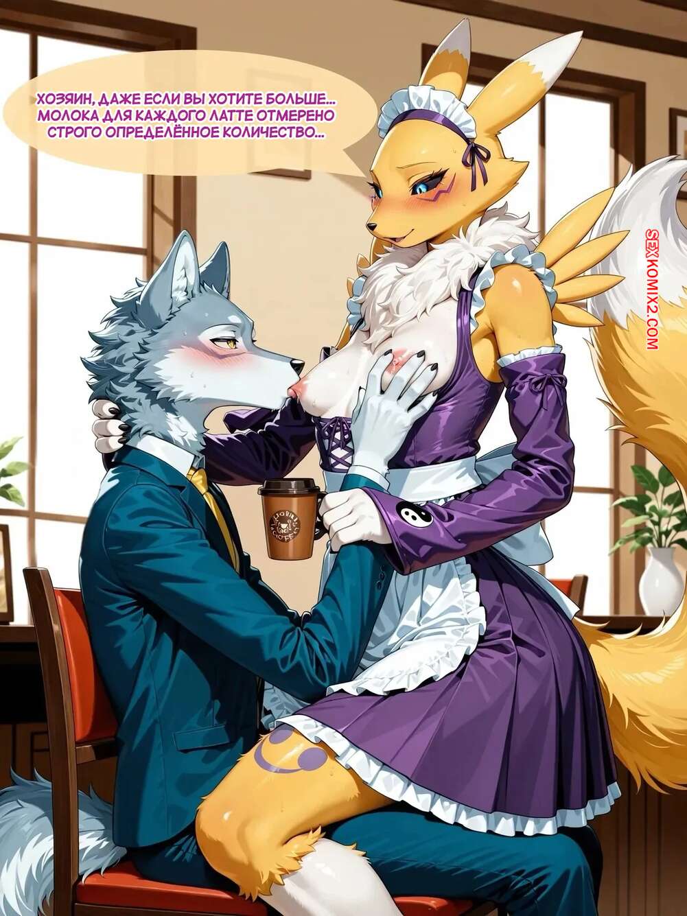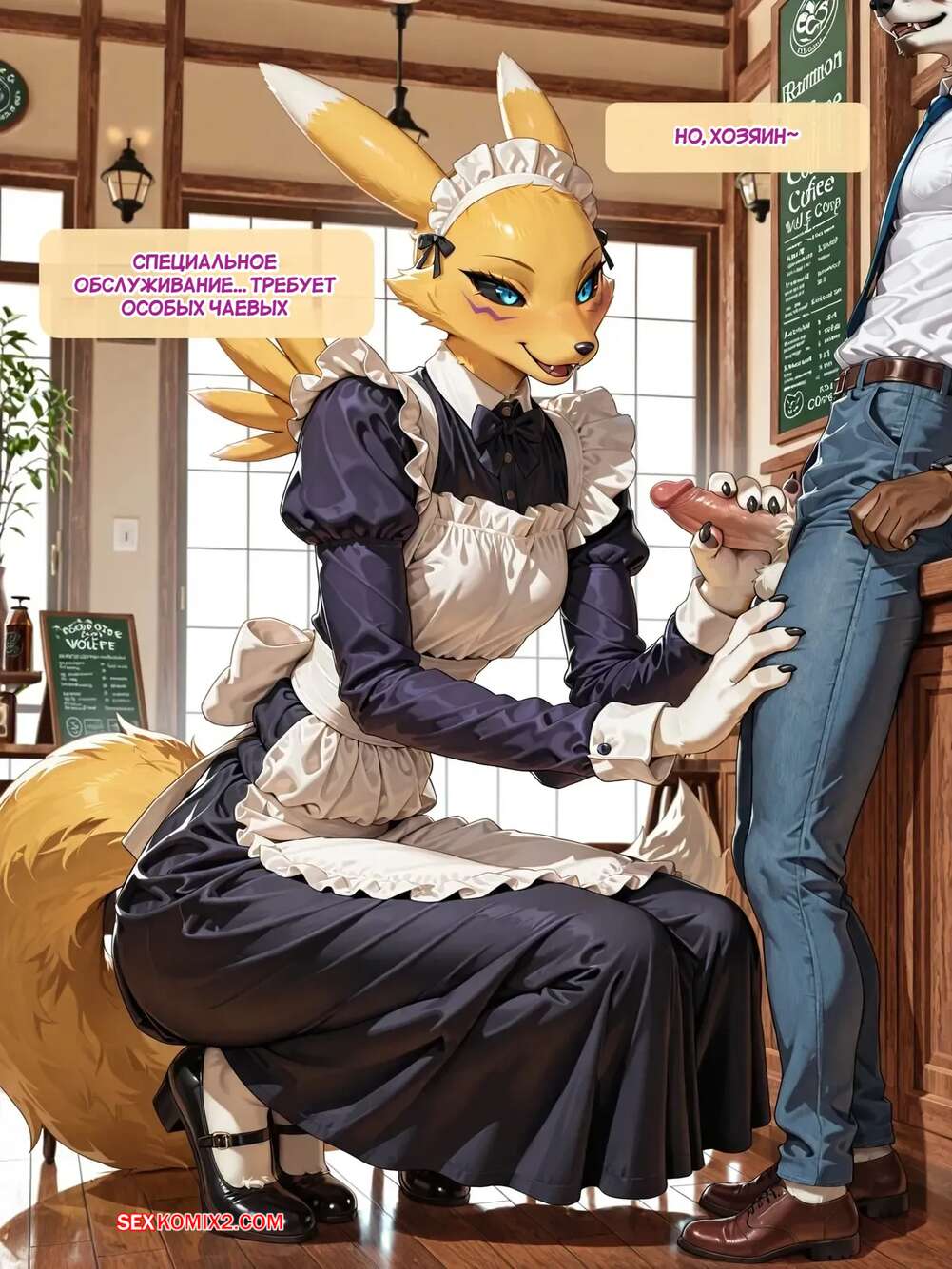 Порно комикс Digimon. Горничная кафе Ренамон. Renamon Maid Cafe Горячие красотки фурри работают в кофейне в образах горничных. Они радуют клиентов своими аппетитными формами, а в перерыве уединяются в отдельной комнате, чтобы трахнуть себя с помощью дилдо.