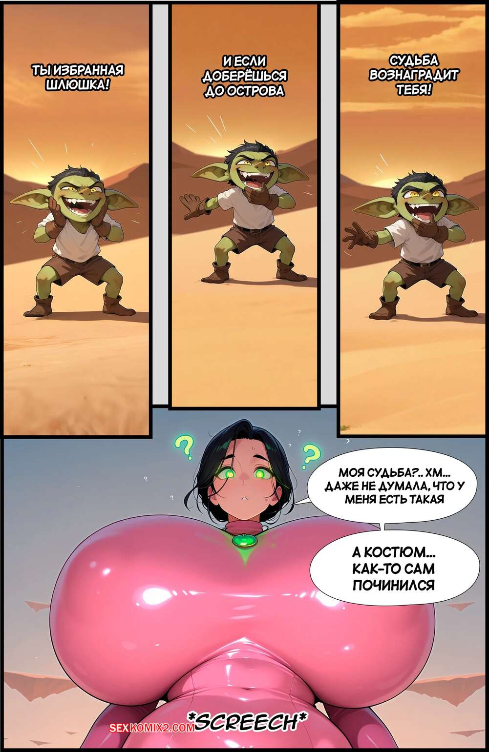 Порно комикс Трансформация другого мира. Часть 2. Otherworld Transformation. SirNrei. Сексуальная брюнетка оказалась в ином мире, где с ее телом стали происходить невероятные изменения. Сиськи девушки резко увеличились в размерах, от чего она почувствовала возбуждение.