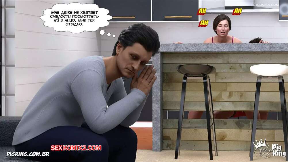 Порно комикс Адская деревня. Маверик Змеиные Глаза. Часть 14. Hell village. Pig King Маверик домогается до своей матери на кухне, пока его отец совсем рядом. Они вместе отправились в ванну, где горячая милфа раздвинула ножки перед сыном и дала ему себя выебать.