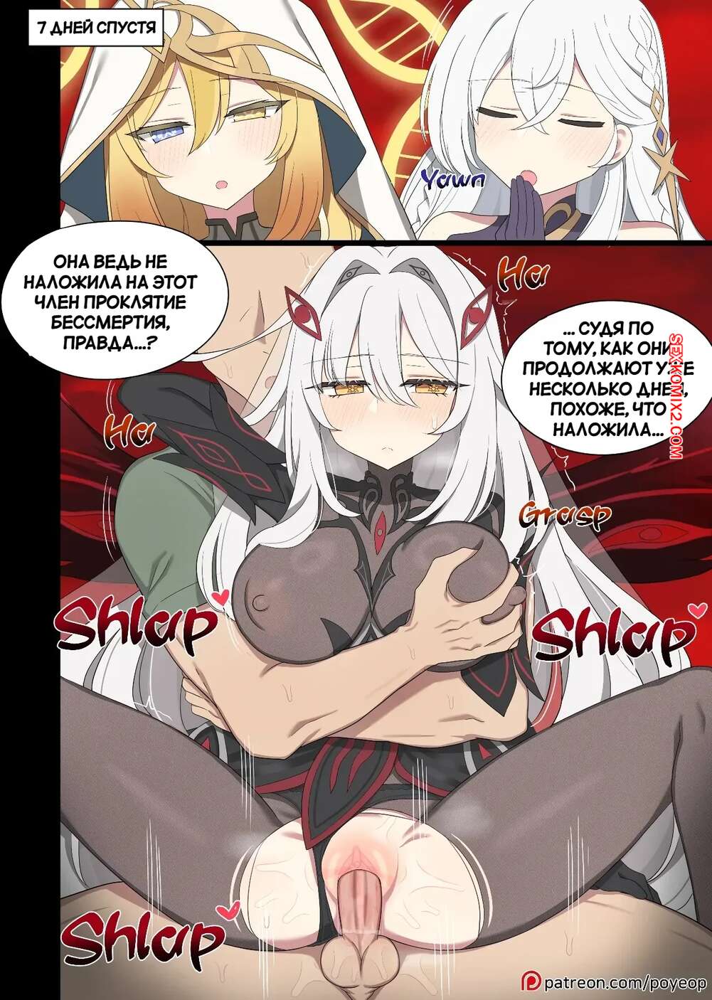 Порно комикс Genshin Impact. Ронова. Ronova. Poyeop. Горячая блондинка заигрывает с парнем, желая повеселиться. Девушка соблазняет парня своими аппетитными формами, после чего раздвинула ножки и дала выебать свою узкую пизденку.