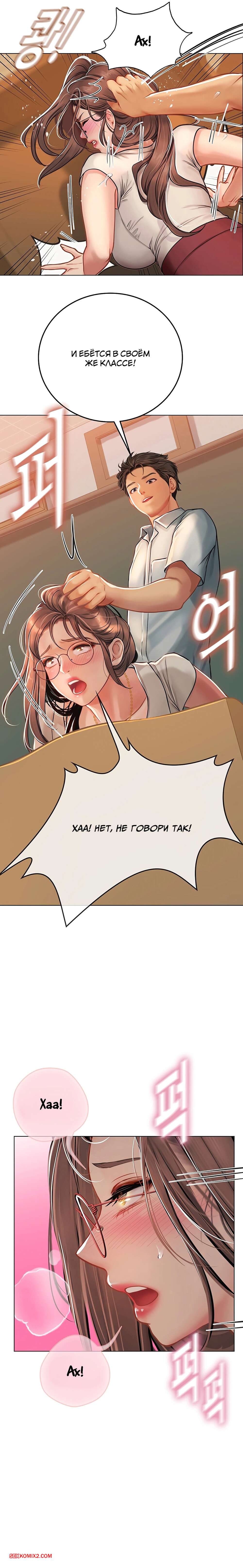 Порно комикс Стажер Хэне. Часть 26 и 27 и 28. inteon haenyeo Парень продолжает трахать свою горячую училку в классе. Он играется пальчиками с ее влажной пизденкой, после чего вставляет хуй ей в пизду и жестко ее трахает, заставляя кричать от удовольствия.