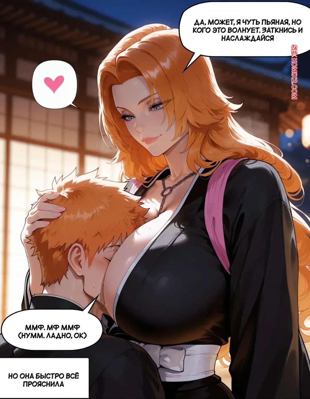 Порно комикс Bleach. Рангику трахает Ичиго по спору. Rangiku fucks Ichigo on a bet. Slaughterbug. Рыжая красотка Рангику проиграла Ичиго спор и теперь должна трахнуться с ним. Девушка встала на колени и стала дрочить сиськами хуй парня, после чего раздвинула ножки и дала себя выебать.