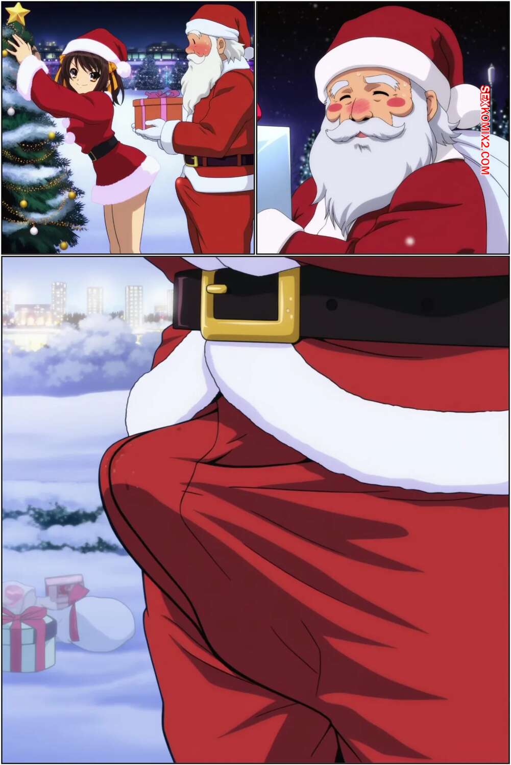 Порно комикс Suzumiya Haruhi And The Milky White Of Christmas Красотка помогала Санте разночить подарки и он не мог отвести глаз от ее сочной попки. У старика встал хуй и девушка стала ему отсасывать, после чего дала себя выебать.