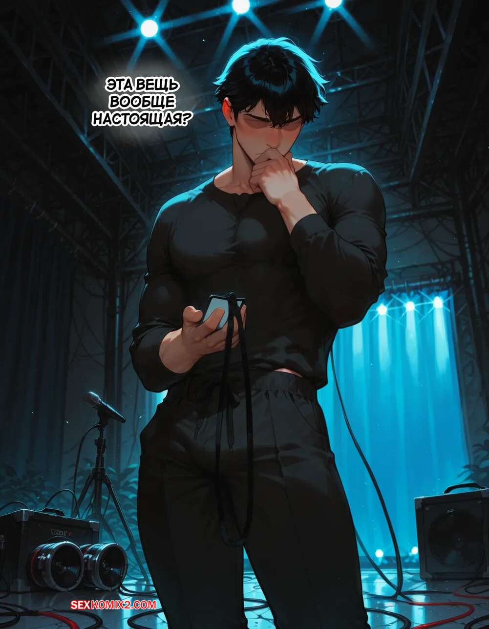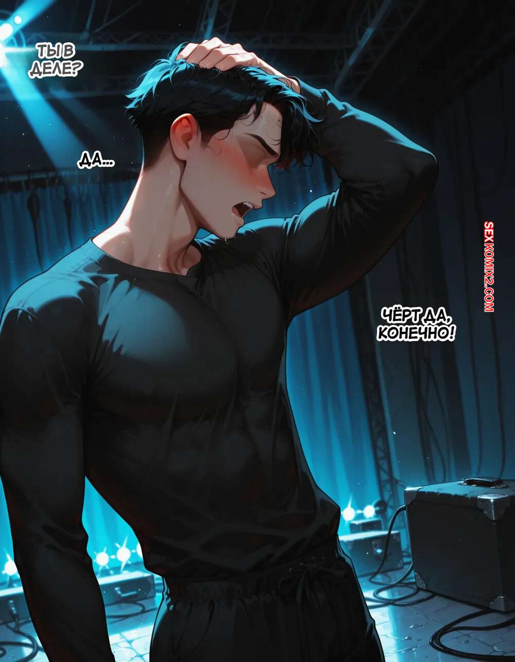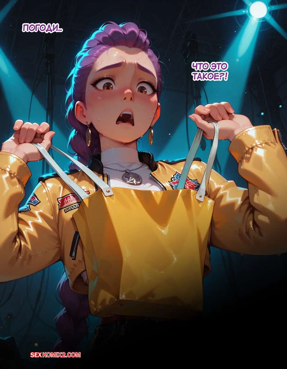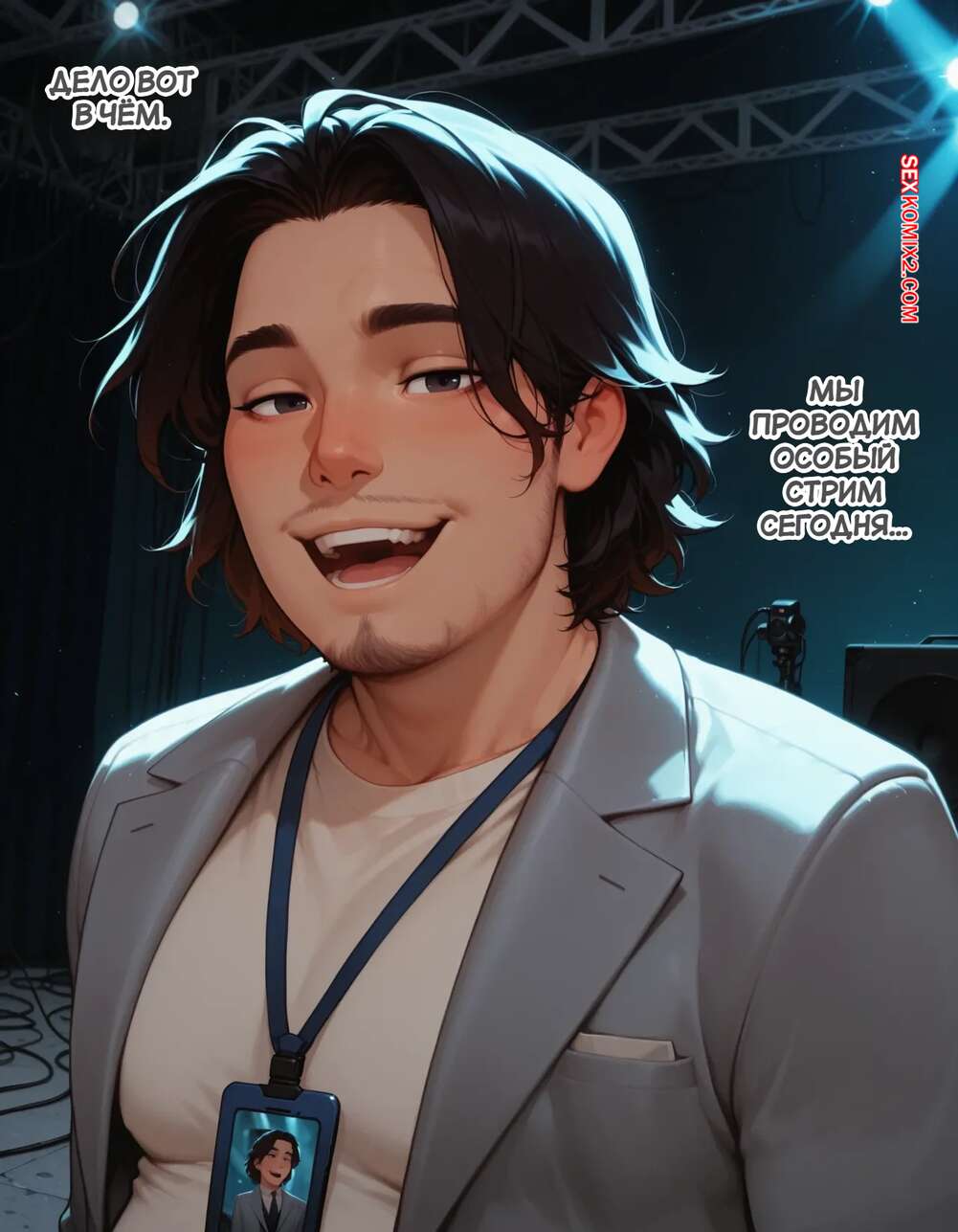 Порно комикс Течка в стриме. Heat On Stream. SAX. Горячая красотка принимает участие в прямом эфире. Она увидела у парня в штанах огромный стояк и не смогла устоять. Сучка встала на колени и взяла в ротик хуец парня, после чего дала ему кончить себе на лицо.