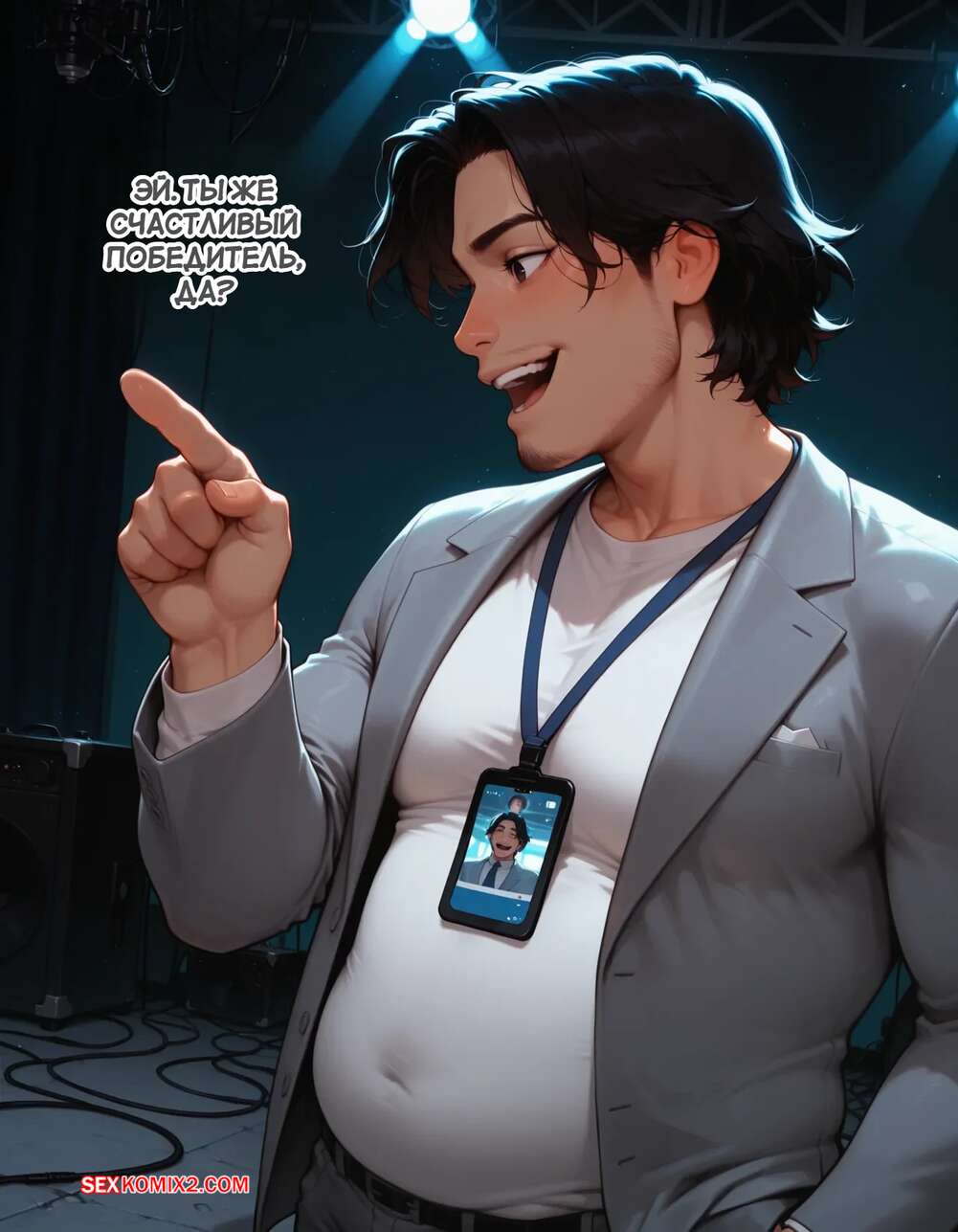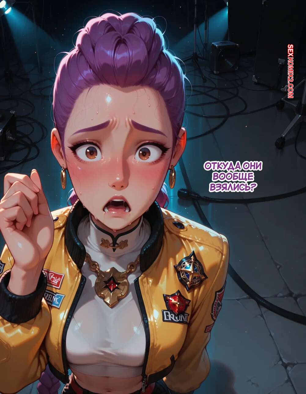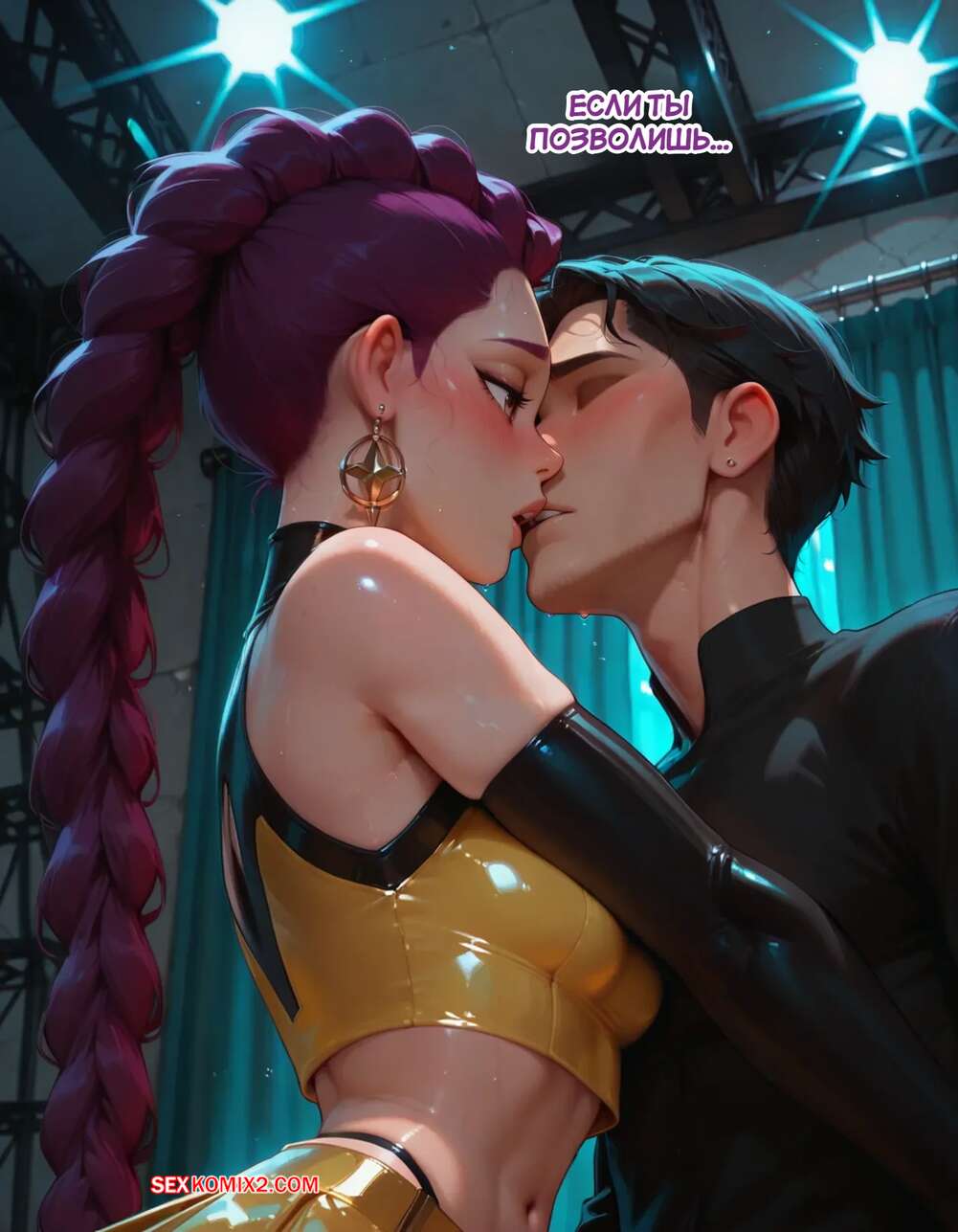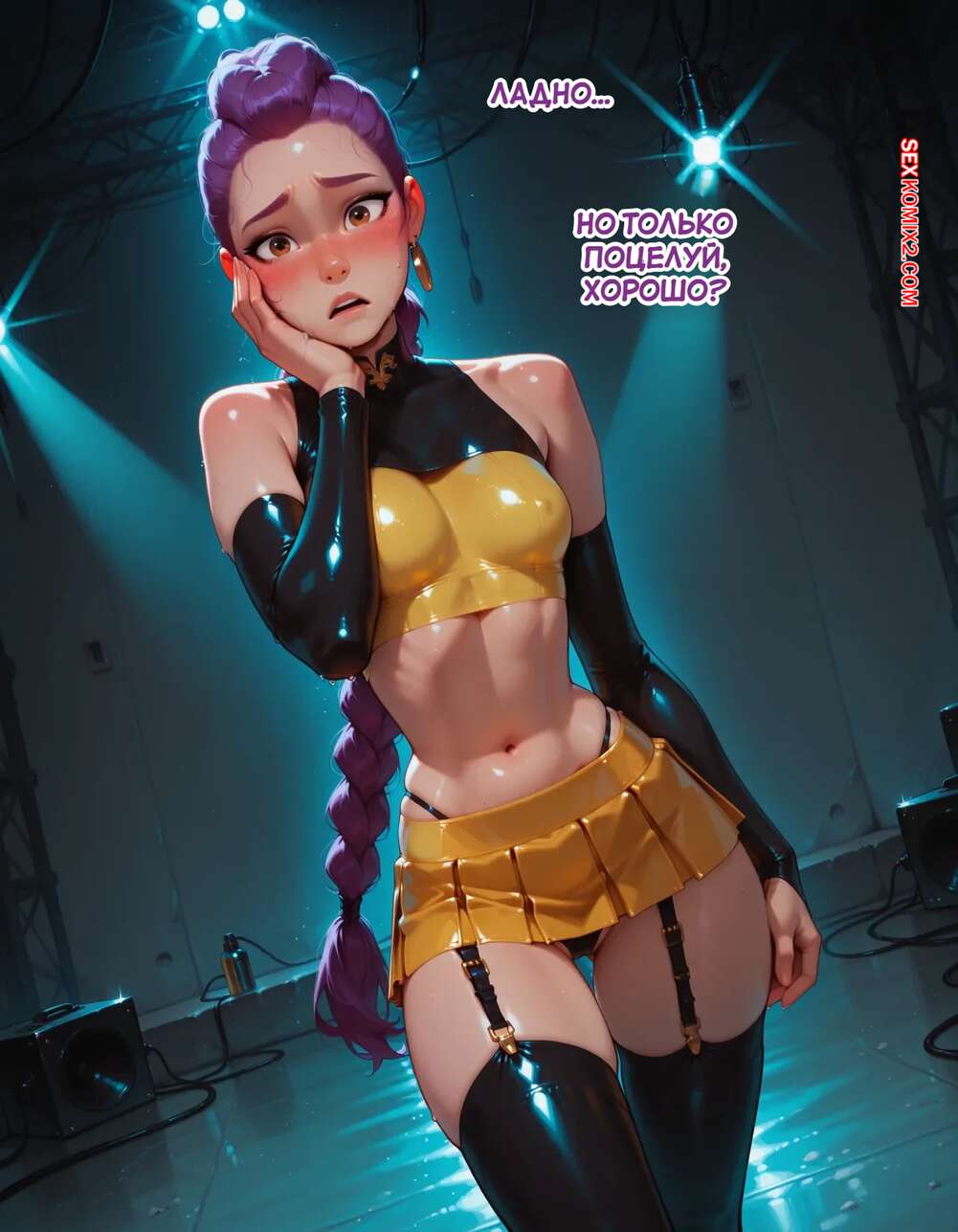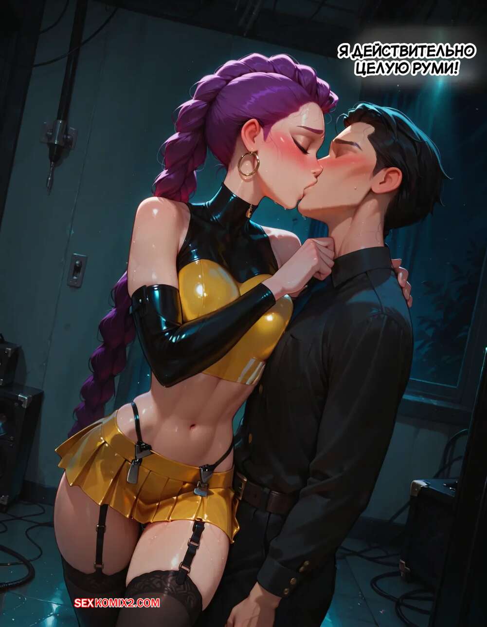 Порно комикс Течка в стриме. Heat On Stream. SAX. Горячая красотка принимает участие в прямом эфире. Она увидела у парня в штанах огромный стояк и не смогла устоять. Сучка встала на колени и взяла в ротик хуец парня, после чего дала ему кончить себе на лицо.