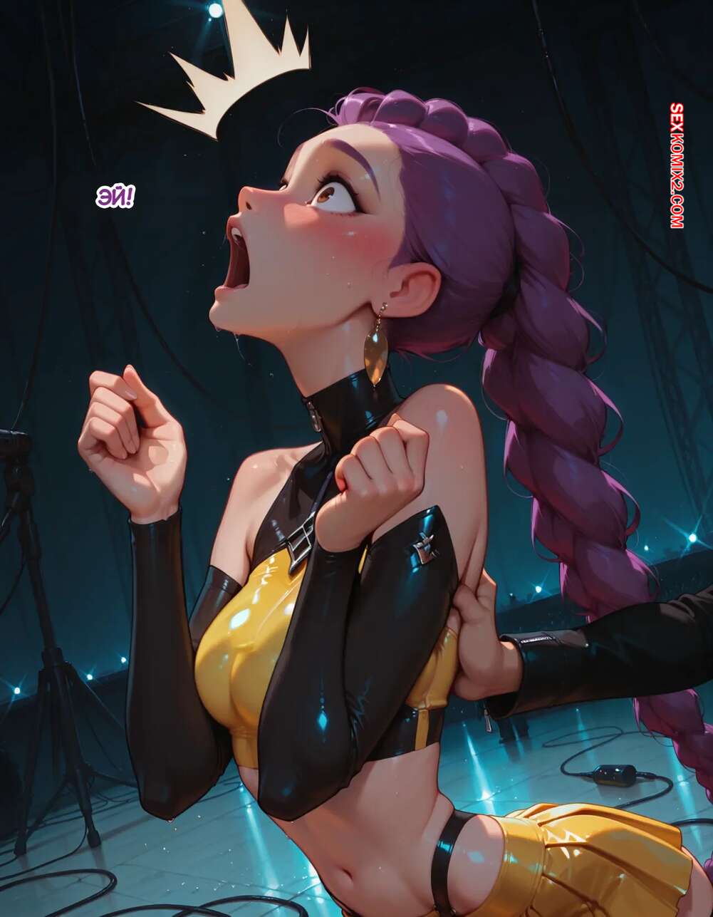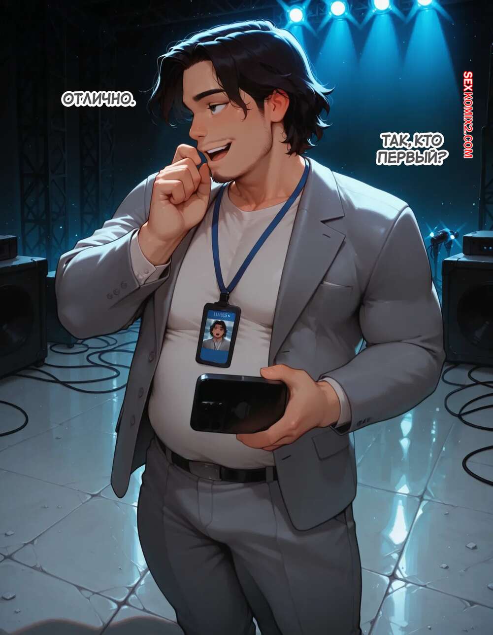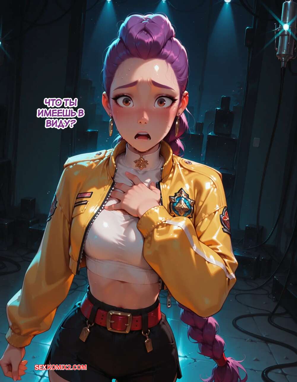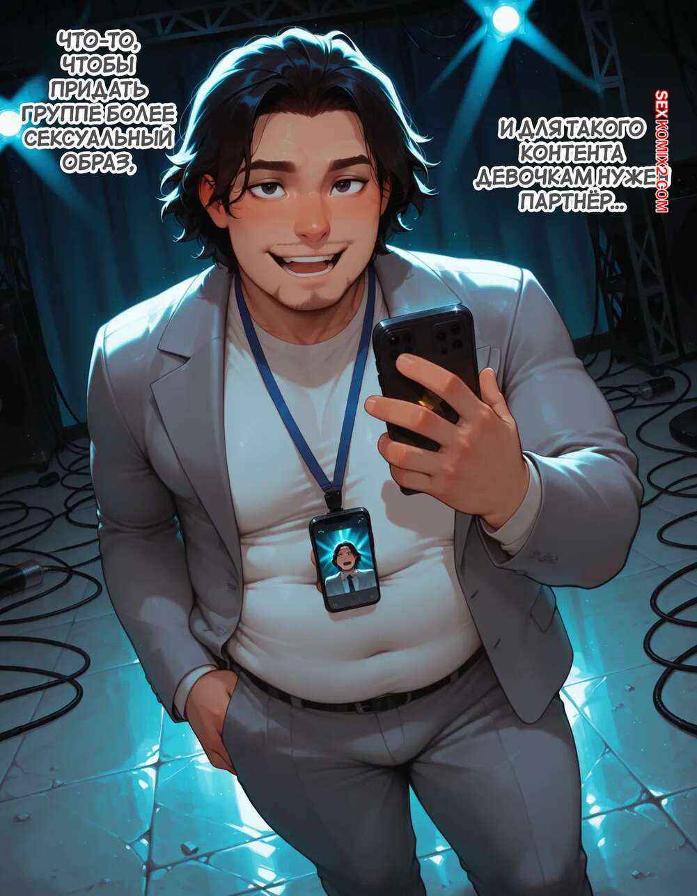 Порно комикс Течка в стриме. Heat On Stream. SAX. Горячая красотка принимает участие в прямом эфире. Она увидела у парня в штанах огромный стояк и не смогла устоять. Сучка встала на колени и взяла в ротик хуец парня, после чего дала ему кончить себе на лицо.