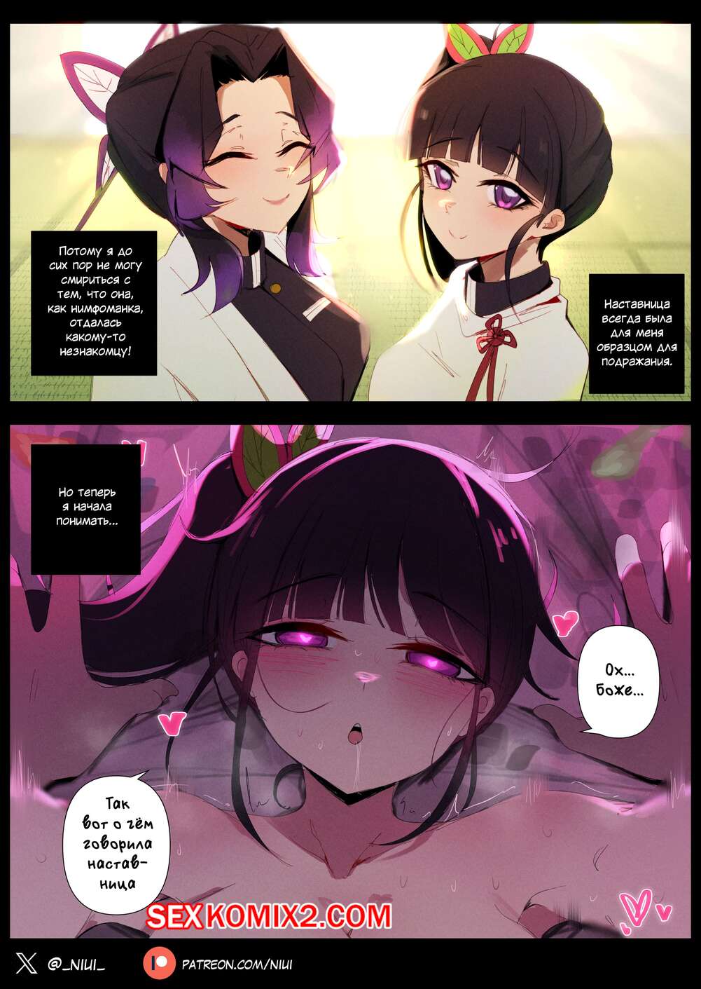 Порно комикс Kimetsu no Yaiba. Шинобу Кочо и Какуши. Shinobu Kocho x Kakushi Comic. Arachnart.