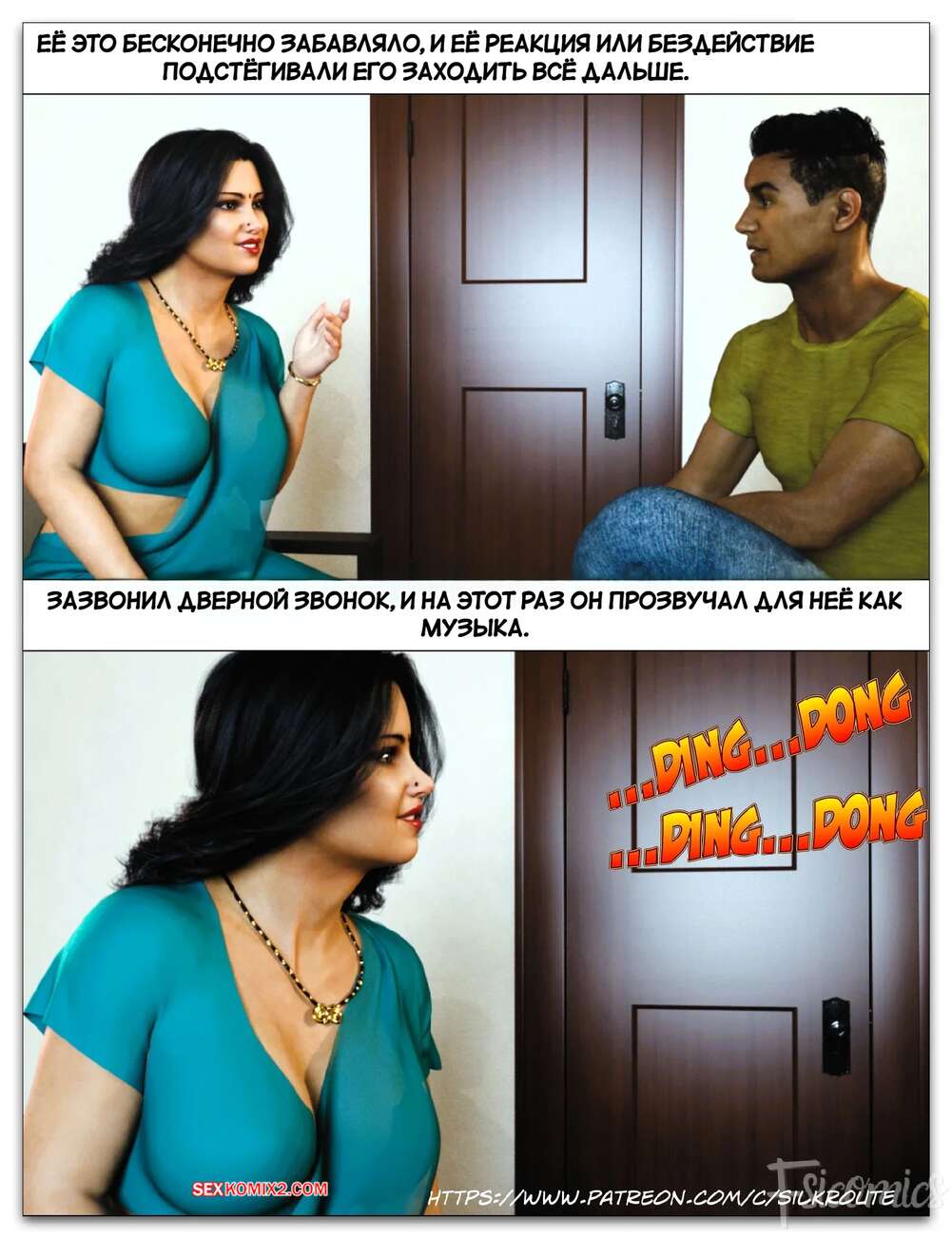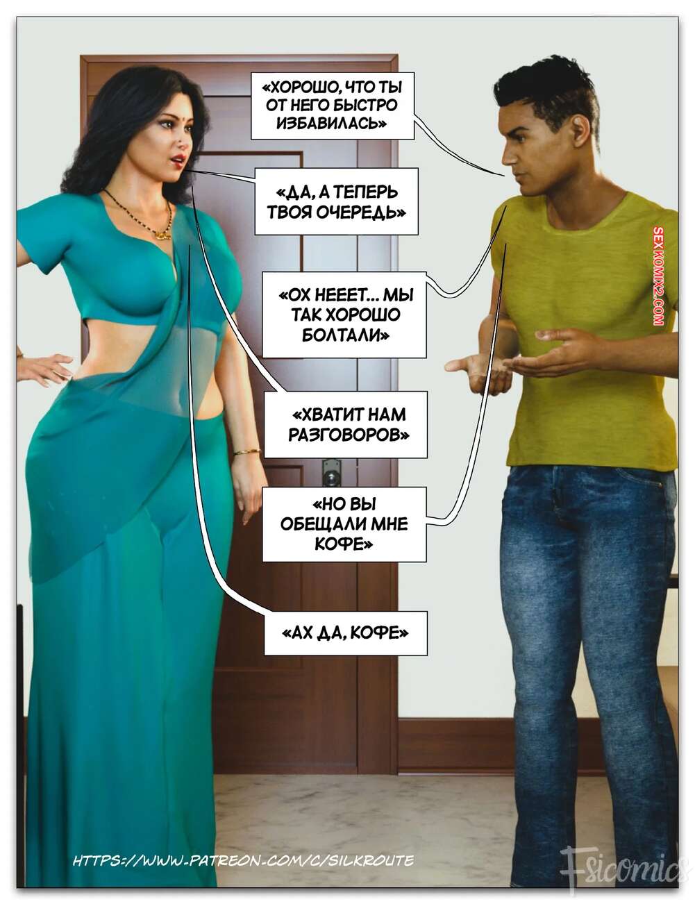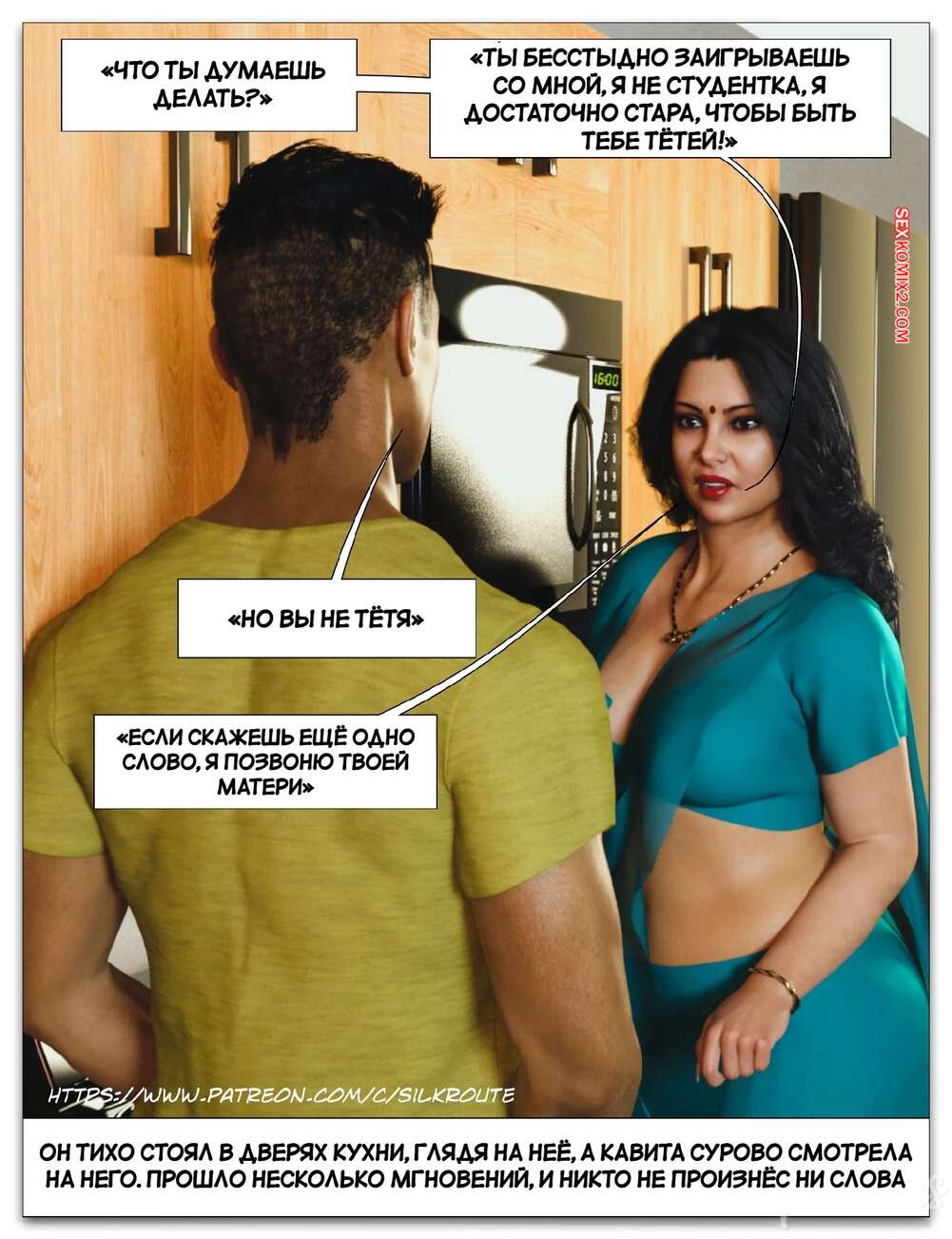 Порно комикс Забрать ее. Часть 8. Take Her. Silk Route Горячая милфа заигрывает с парнем на кухне и он быстро возбуждается. Он поставил сучку раком и стала тереться о нее твердым членом, после чего они решили отправиться в спальню.