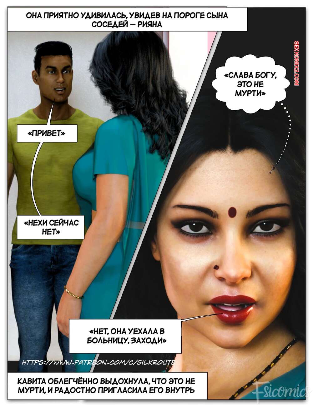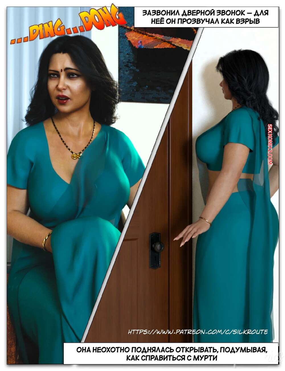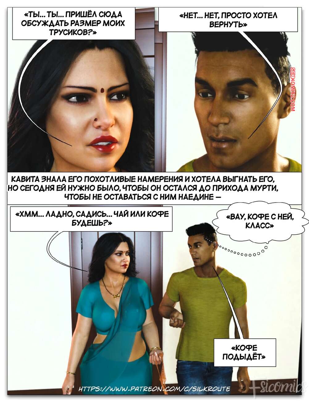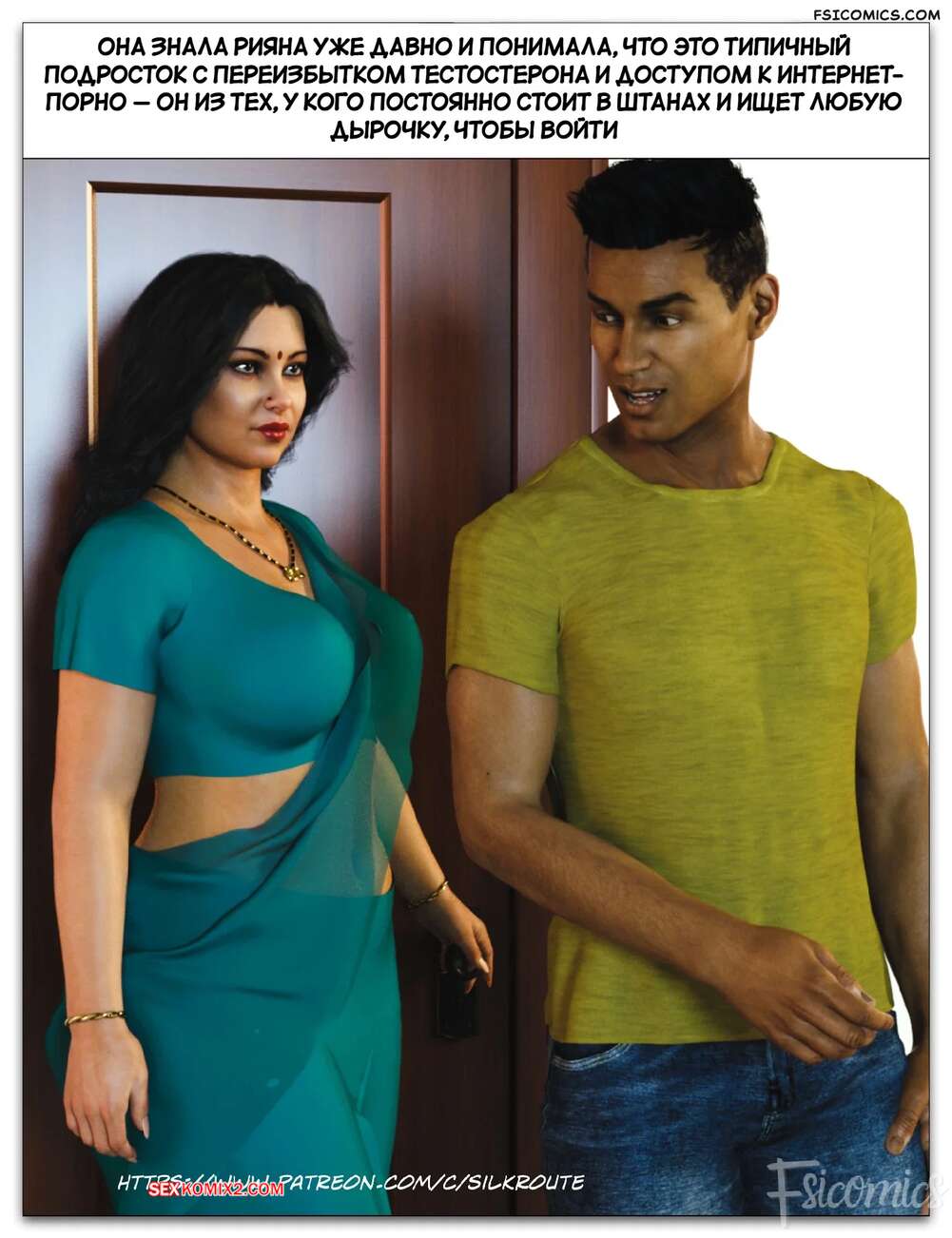 Порно комикс Забрать ее. Часть 8. Take Her. Silk Route Горячая милфа заигрывает с парнем на кухне и он быстро возбуждается. Он поставил сучку раком и стала тереться о нее твердым членом, после чего они решили отправиться в спальню.