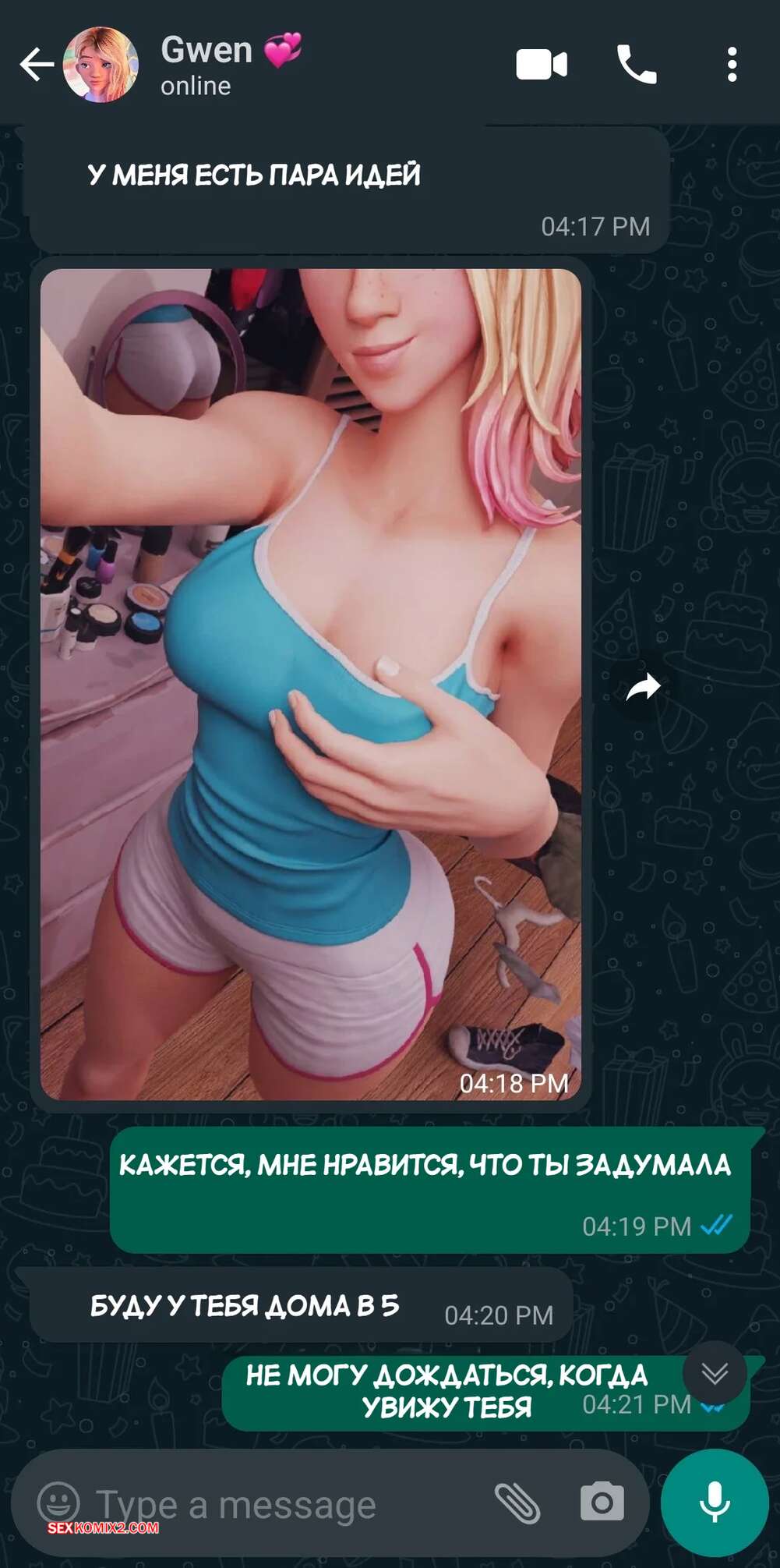 Порно комикс Marvel. Паук Гвен. Spider Gwen. eskand art. Красотка Гвен отправляет отцу Майлза откровенные фотографии и приглашает его к себе. Сучка отсосала большой хуй темнокожего мужика, после чего дала ему себя трахнуть.