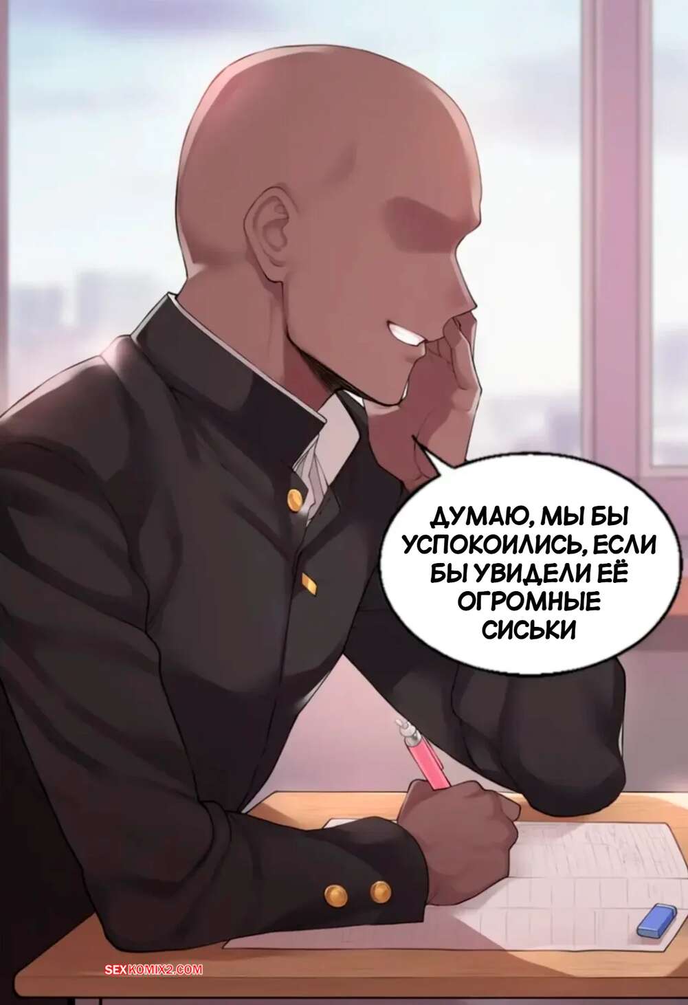 Порно комикс Уроки по снятию стресса. Stress Relieving Lessons. Livefrog. Парни много болтали во время урока и горячая училка решила их успокоить. Она встала на колени и взяла в ротик большие хуи учеников, после чего дала им себя выебать во все дырочки.