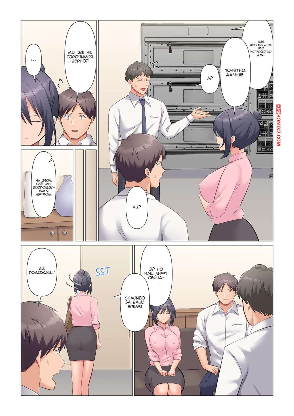 Порно комикс Трахаю свою начальницу, которая никогда не теряет бдительности. Часть 15 Парень застрял в лифте со своей начальницей и решил воспользоваться ситуацией по полной. Он стал сосать большие сиськи девушки, после чего вставил в нее свой член и хорошенько ее трахнул.