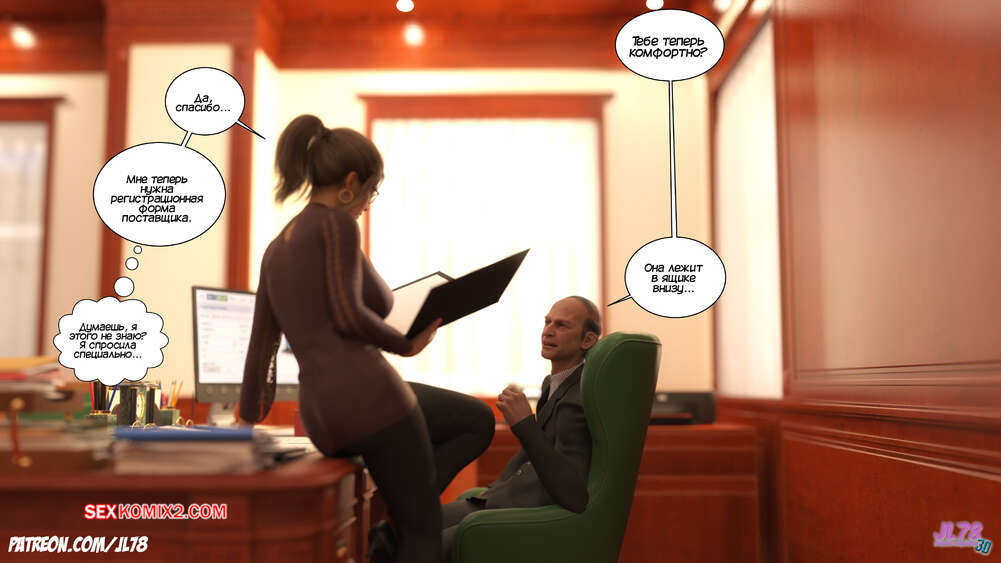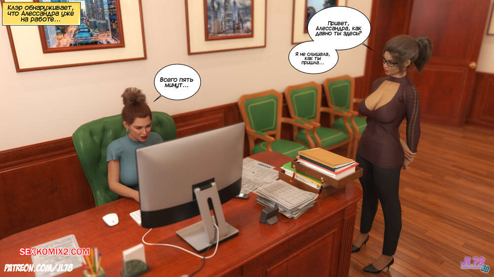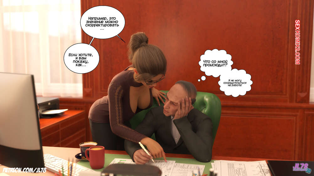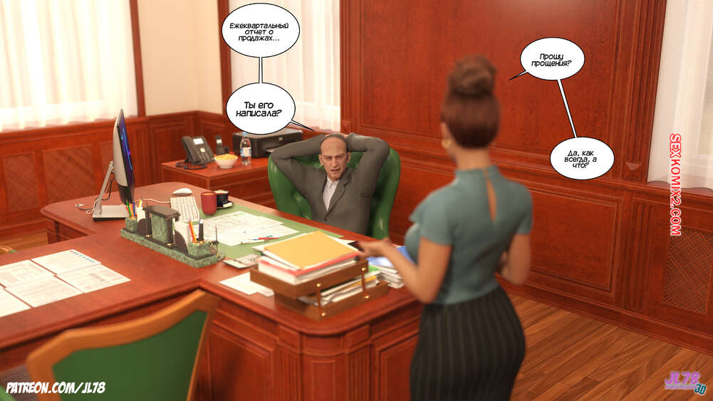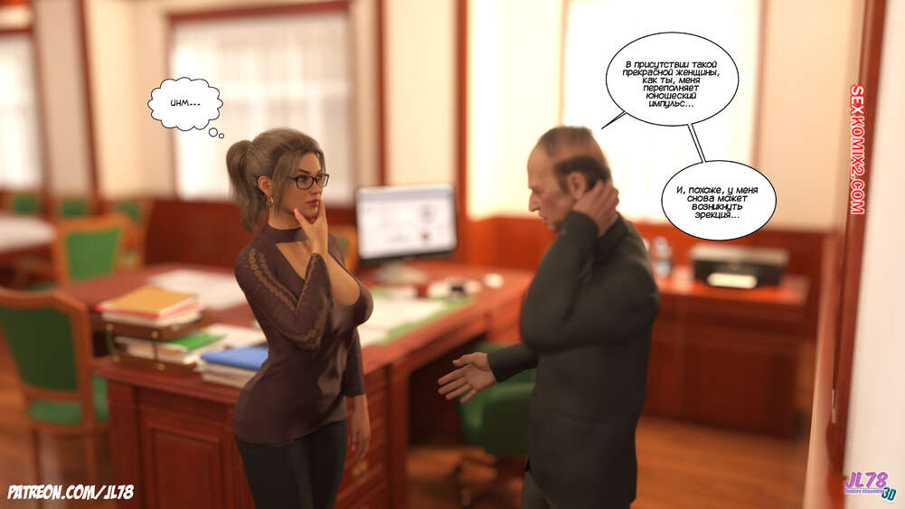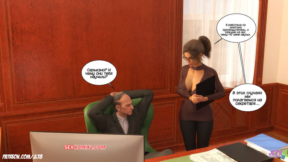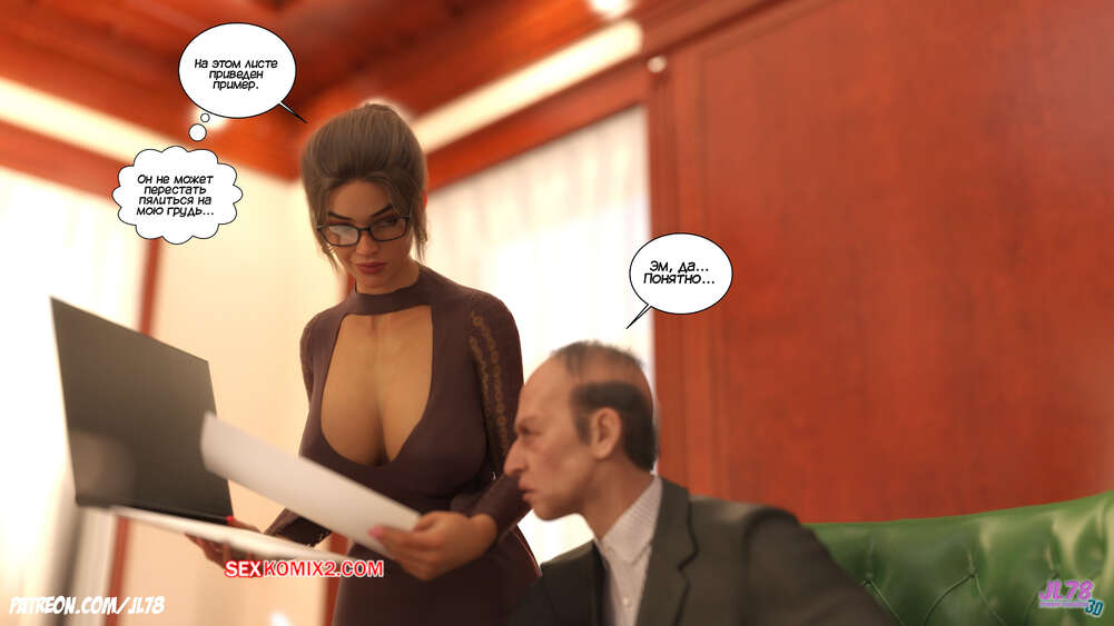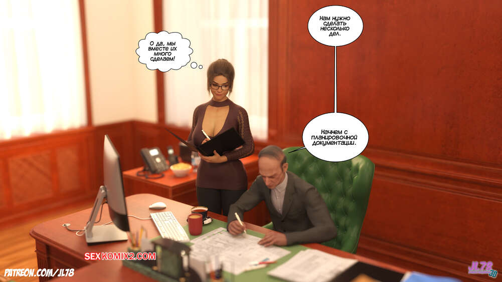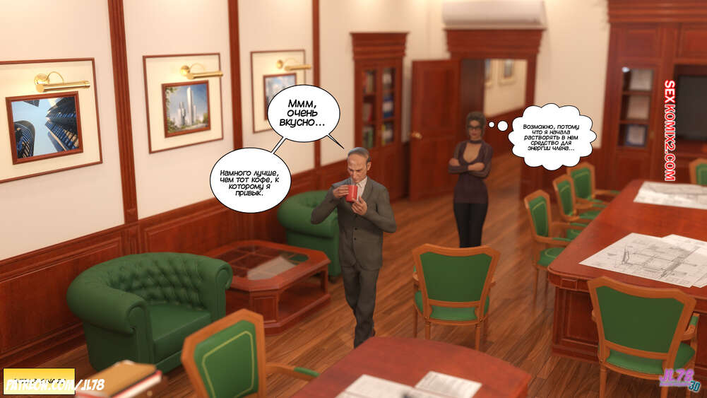 Порно комикс Семейка Риззи. Часть 2. The Rizzi family. JL78 Красотка Клэр решила соблазнить своего босса на работе, чтобы затем добиться от него плюшек. Аппетитная милфа подсыпала ему виагру в кофе, чтобы возбудить его и заняться сексом. Ее план идет как по маслу.