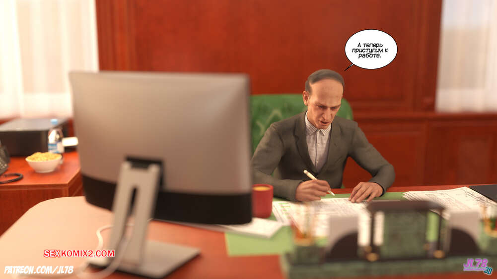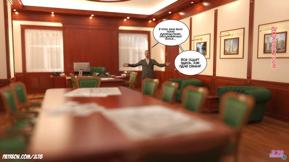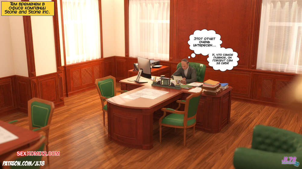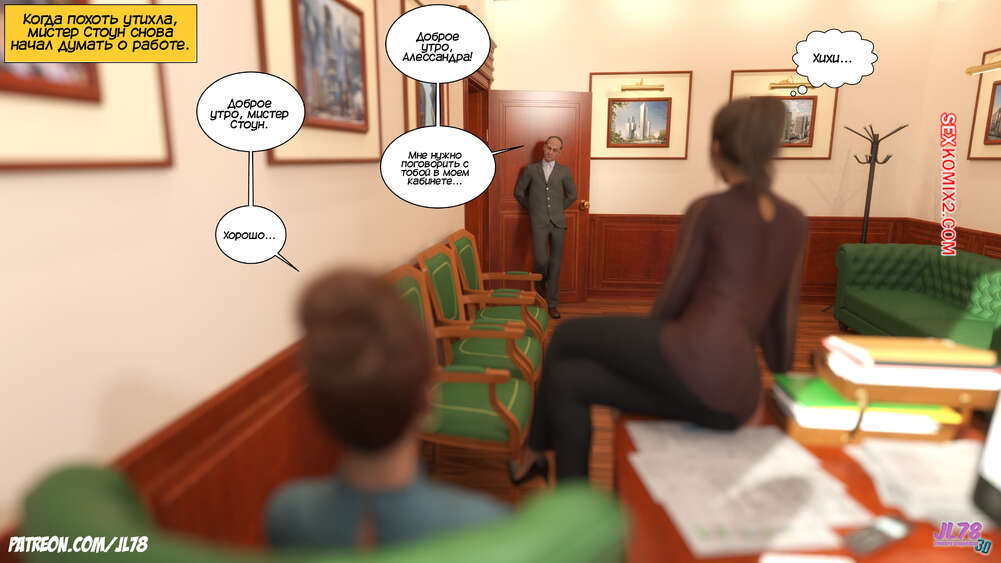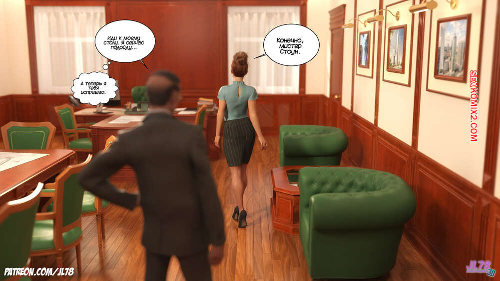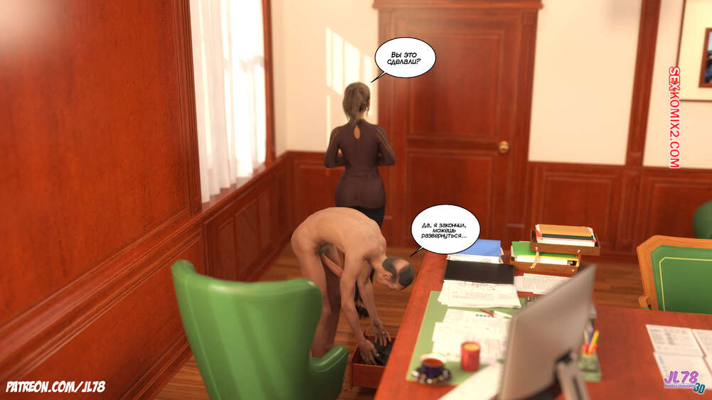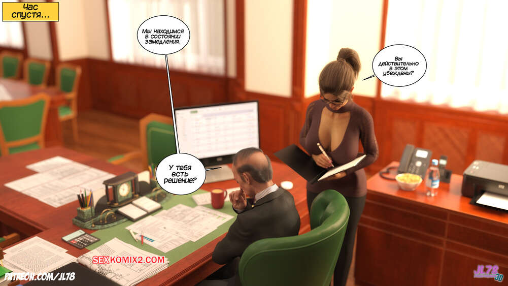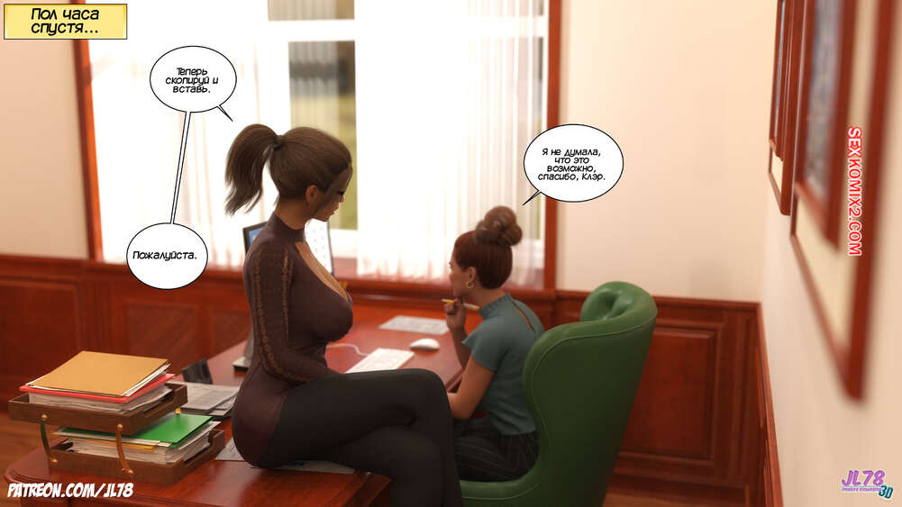 Порно комикс Семейка Риззи. Часть 2. The Rizzi family. JL78 Красотка Клэр решила соблазнить своего босса на работе, чтобы затем добиться от него плюшек. Аппетитная милфа подсыпала ему виагру в кофе, чтобы возбудить его и заняться сексом. Ее план идет как по маслу.