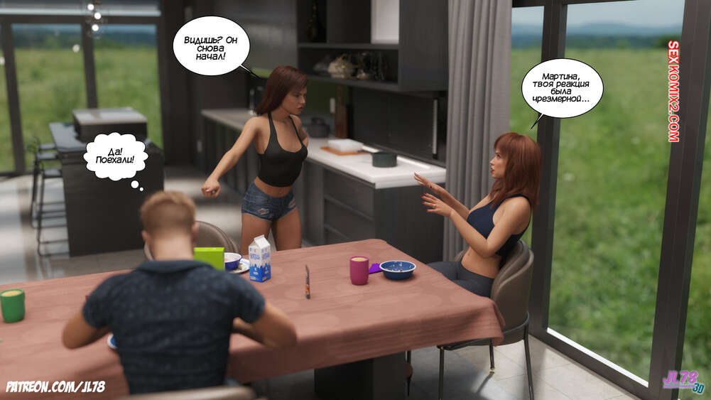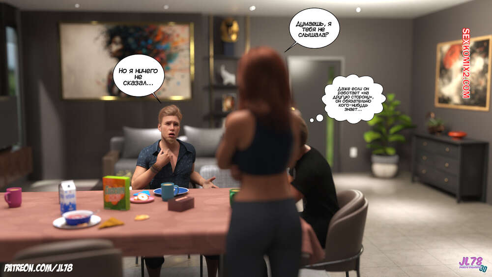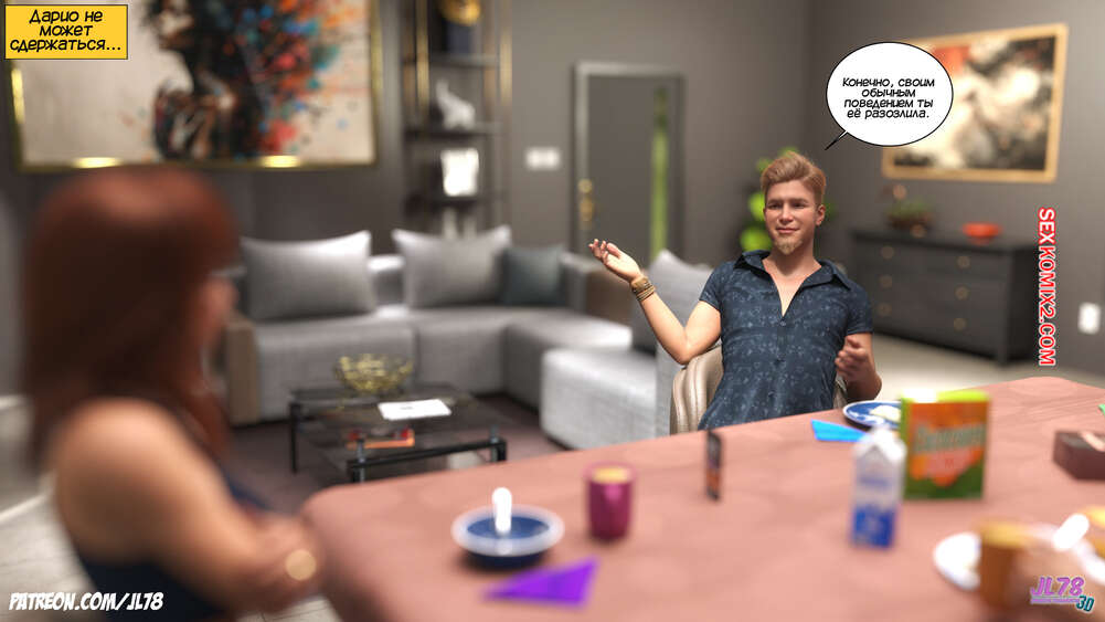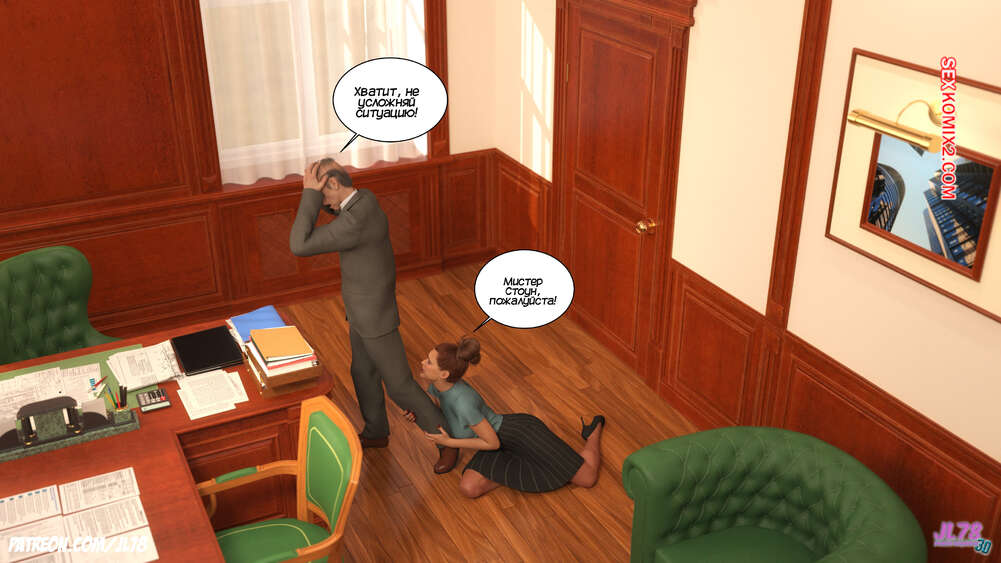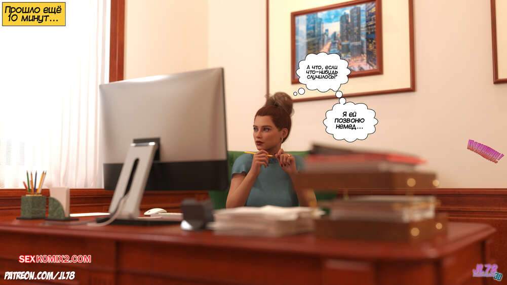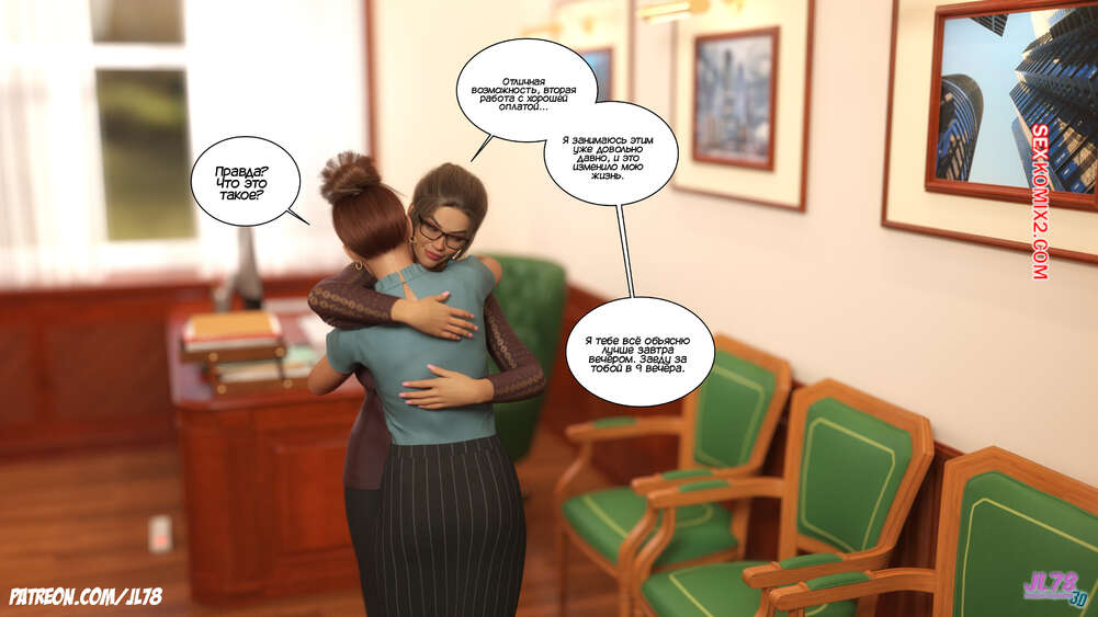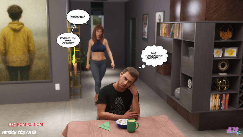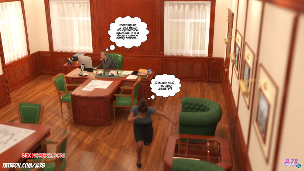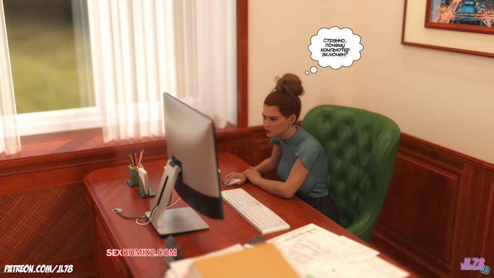 Порно комикс Семейка Риззи. Часть 2. The Rizzi family. JL78 Красотка Клэр решила соблазнить своего босса на работе, чтобы затем добиться от него плюшек. Аппетитная милфа подсыпала ему виагру в кофе, чтобы возбудить его и заняться сексом. Ее план идет как по маслу.