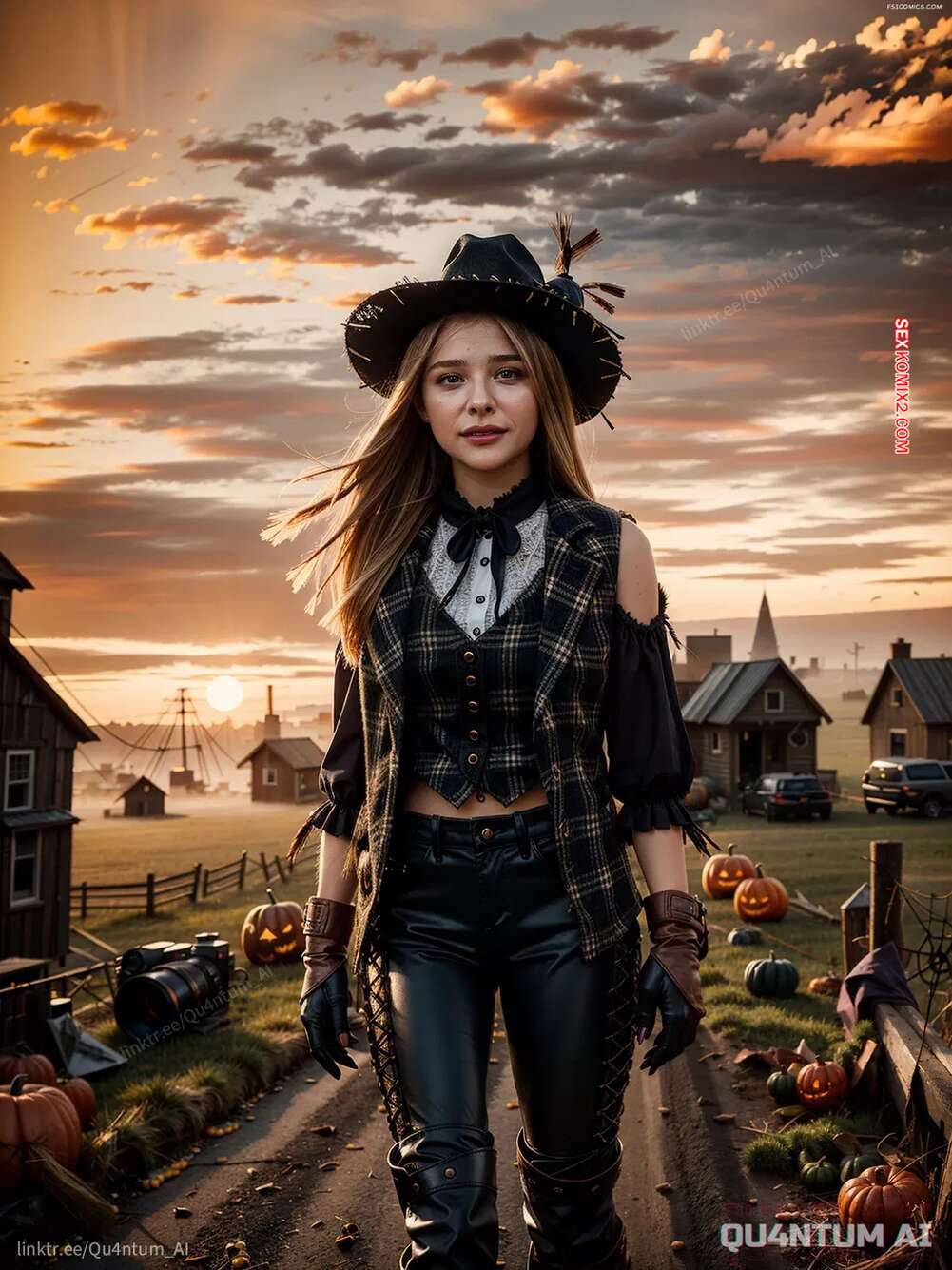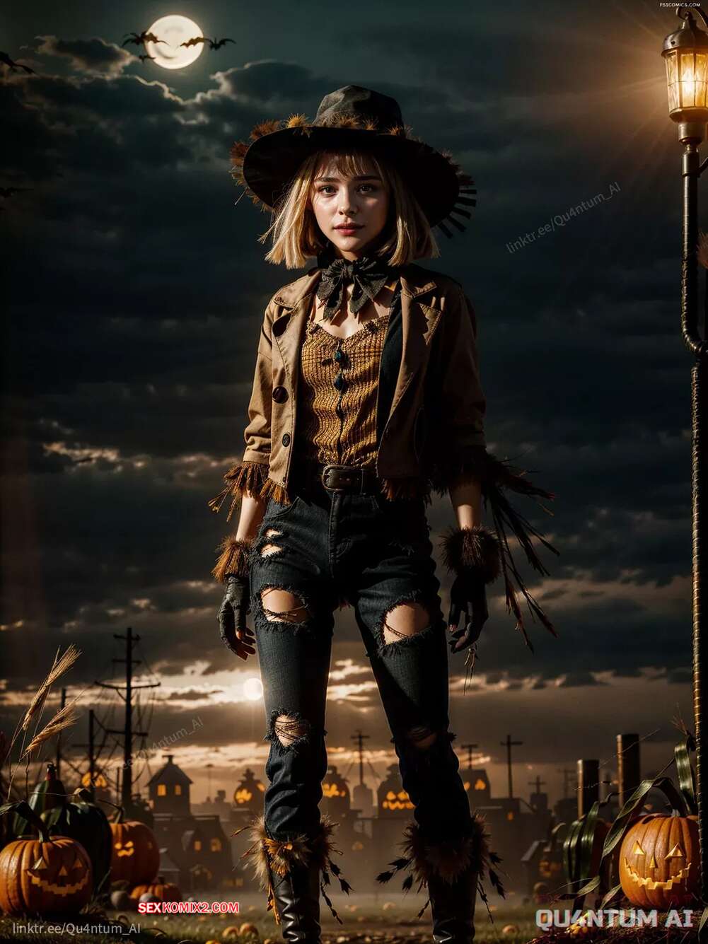 Порно комикс Chloe Gratz Moretz. Halloween Scarecrow Cosplay Costume. QuantumAI Сборник ИИ артов с горячей блондинкой Хлоей Грейс Морец. Девушка решила примерить сексуальный наряд в стилистике Хэллоуина, который подчеркивает во всей красе ее прелести.