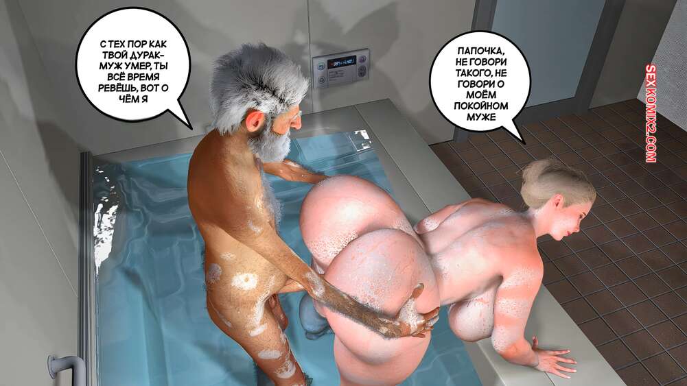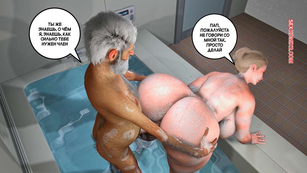 Порно комикс Забота о моем отце. Часть 5. Care my father. Bartolito3d for sexkomix2.com Возбужденный старик зовет свою горячую дочь принять ванну вместе. Там она не может устоять перед соблазном и раздвигает ножки в позе раком перед отцом, чтобы он ее выебал.