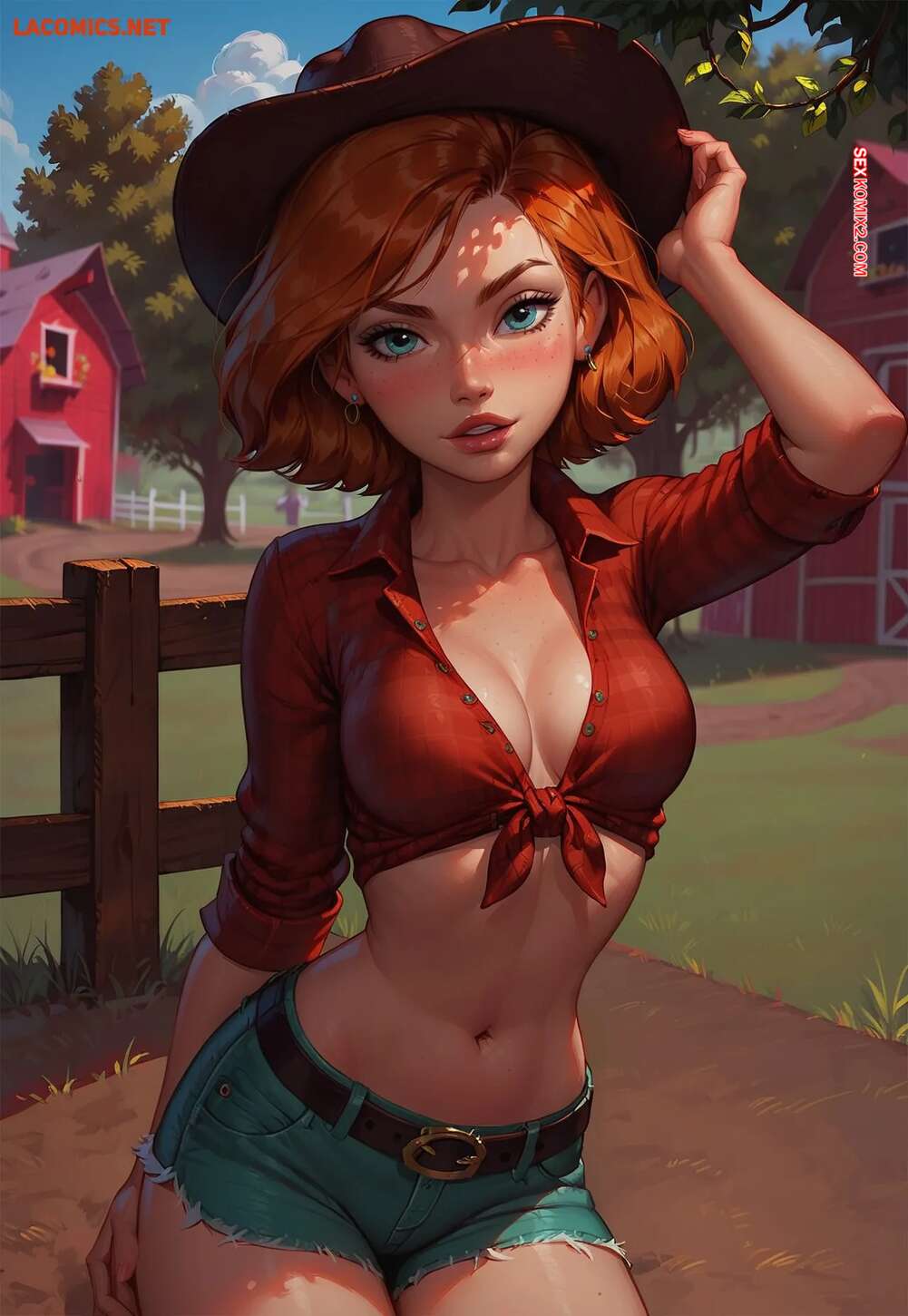 Порно комикс Ann Possible Farm Hand. LowFireStudios Горячая милфа решила повеселиться с симпатичным парнем на ферме. Она разделась и стала сосать его член, после чего раздвинула ножки и дала себя хорошенько выебать.
