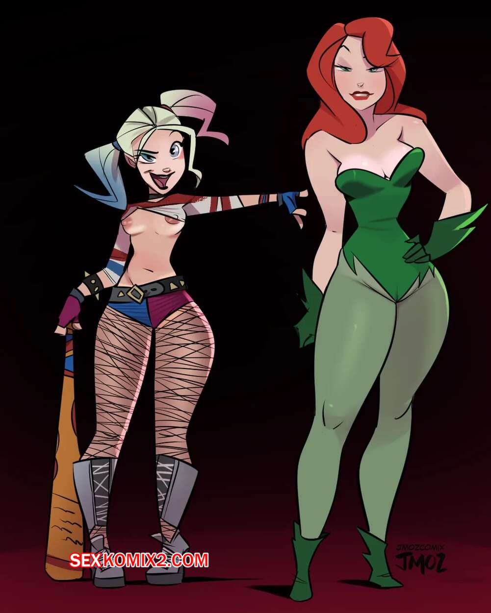 Порно комикс Sleepovers. Jmoz Сборник артов с горячими красотками Харли и Айви. Девушки позируют и демонстрируют свои шикарные тела, после чего Айви достает свой твердый член и дает его в ротик Харли.