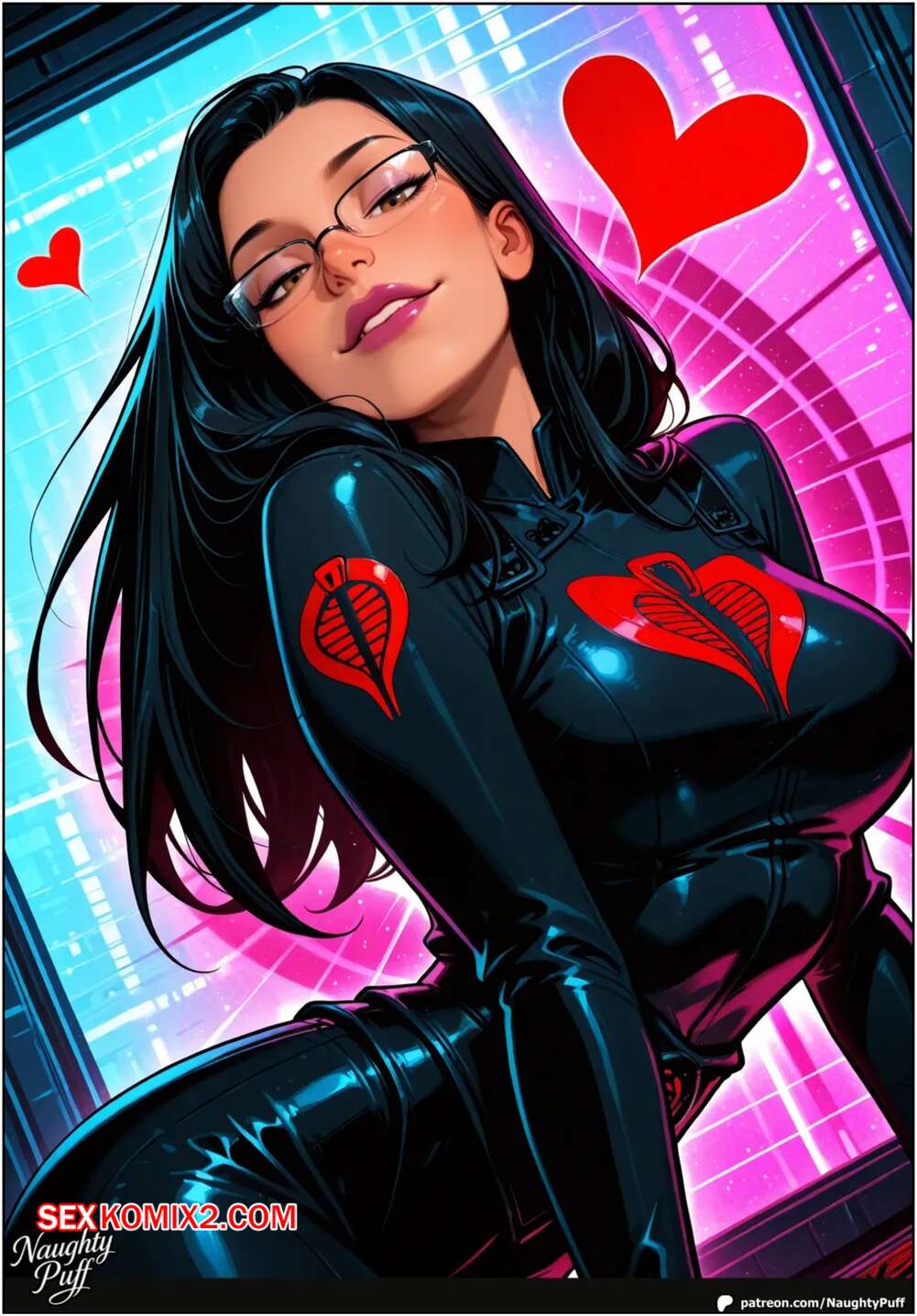 Порно комикс G.I. Joe. Cobras Private Interrogation Room. NaughtyPuff Горячая брюнетка возбуждена и хочет трахаться. Она раздевается перед своими дружками и соблазняет их, после чего раздвигает ножки и дает выебать себя во все дырочки.