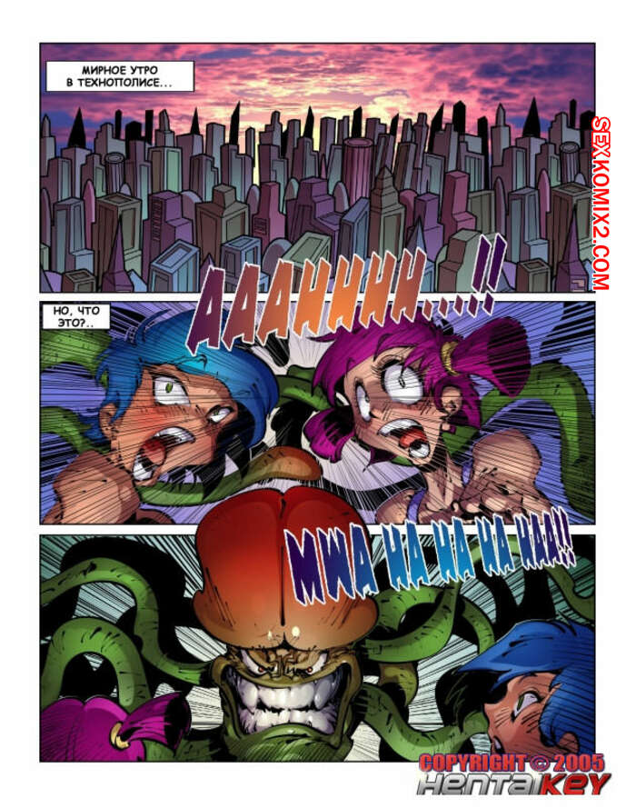 Порно комикс Героиня Лили. Юбилейный выпуск Существо с щупальцами напало на шикарных красоток, но им на помощь пришла героиня. Тогда существо решило переключиться на нее и трахнуть все ее дырочки.