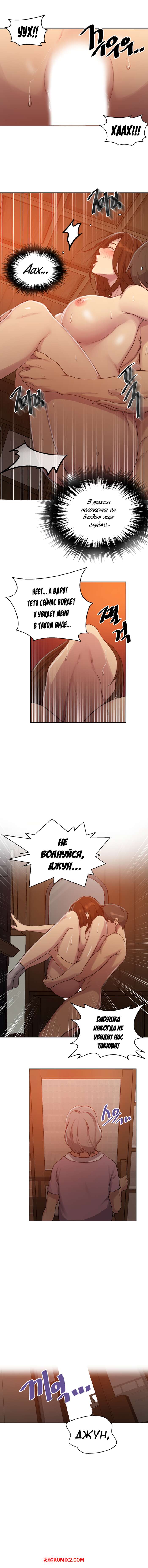 Порно комикс Тайное обучение. Часть 93. SecretClass Парнишка продолжает кайфовать находясь со своей тети в доме ее тети. Они постоянно ходят голые по дому и ебутся в любое время. В один из таких разов, тетя девушки вернулась домой и наша парочка испугалась от этого.