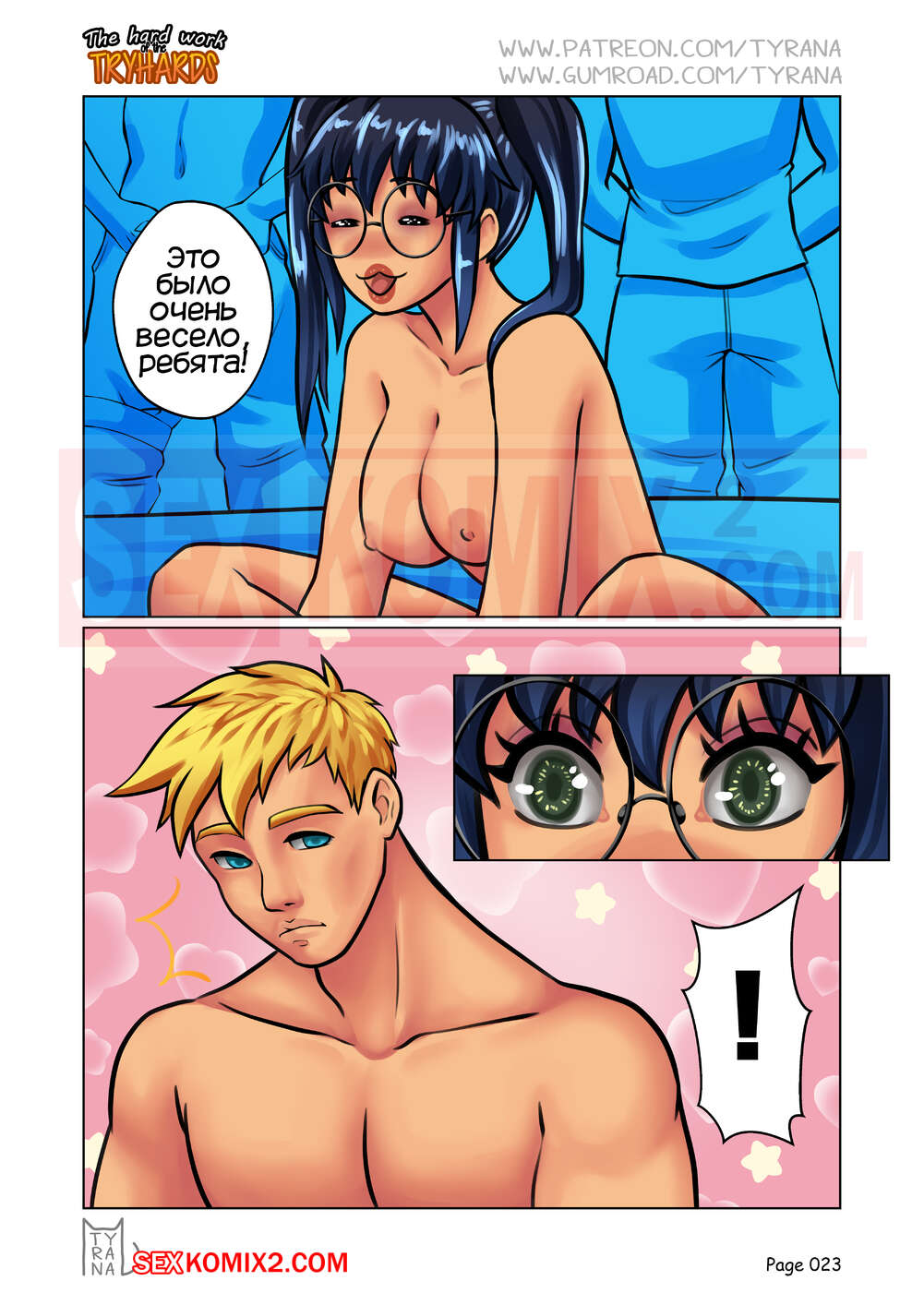 Порно комикс Самая сложная командная работа. The Hard Work Of The Tryhards. Tyrana Горячая красотка брюнетка попала в компанию нескольких парней, которые возбудились, глядя на красотку и решили ее выебать. Они раздели ее и поставили на колени, после чего выебали ее в ротик, а затем устроили ей двойное проникновение.
