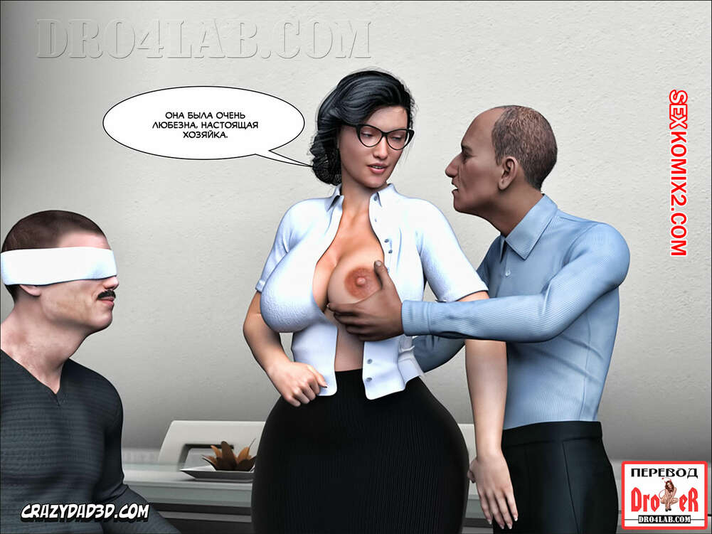 Порно комикс Жена проповедника. Часть 4. The Shepherd Wife. CrazyDad3D Горячей милфе так понравилось ебаться с мужиком, поэтому она решилась на нечто рисковое. Она усадила своего мужа на диван и связала ему глаза, а затем начала сосать у мужика и ебаться с ним.