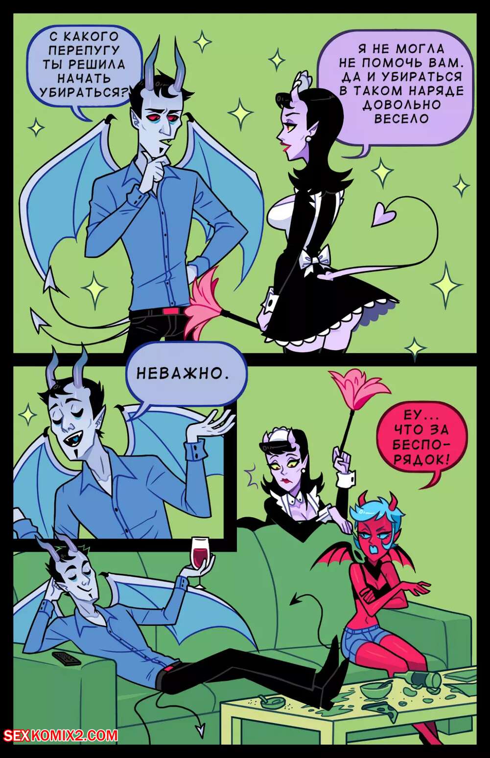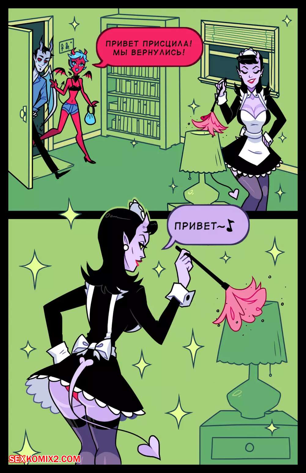 Порно комикс Присцилла повелительница двойного члена Горячая брюнетка горничная решила повеселиться с парнем с двумя хуями. Она раздела его и стала ласкать оба его хуя, а затем к ним присоединилась еще одна девушка и парень выебал их обеих.