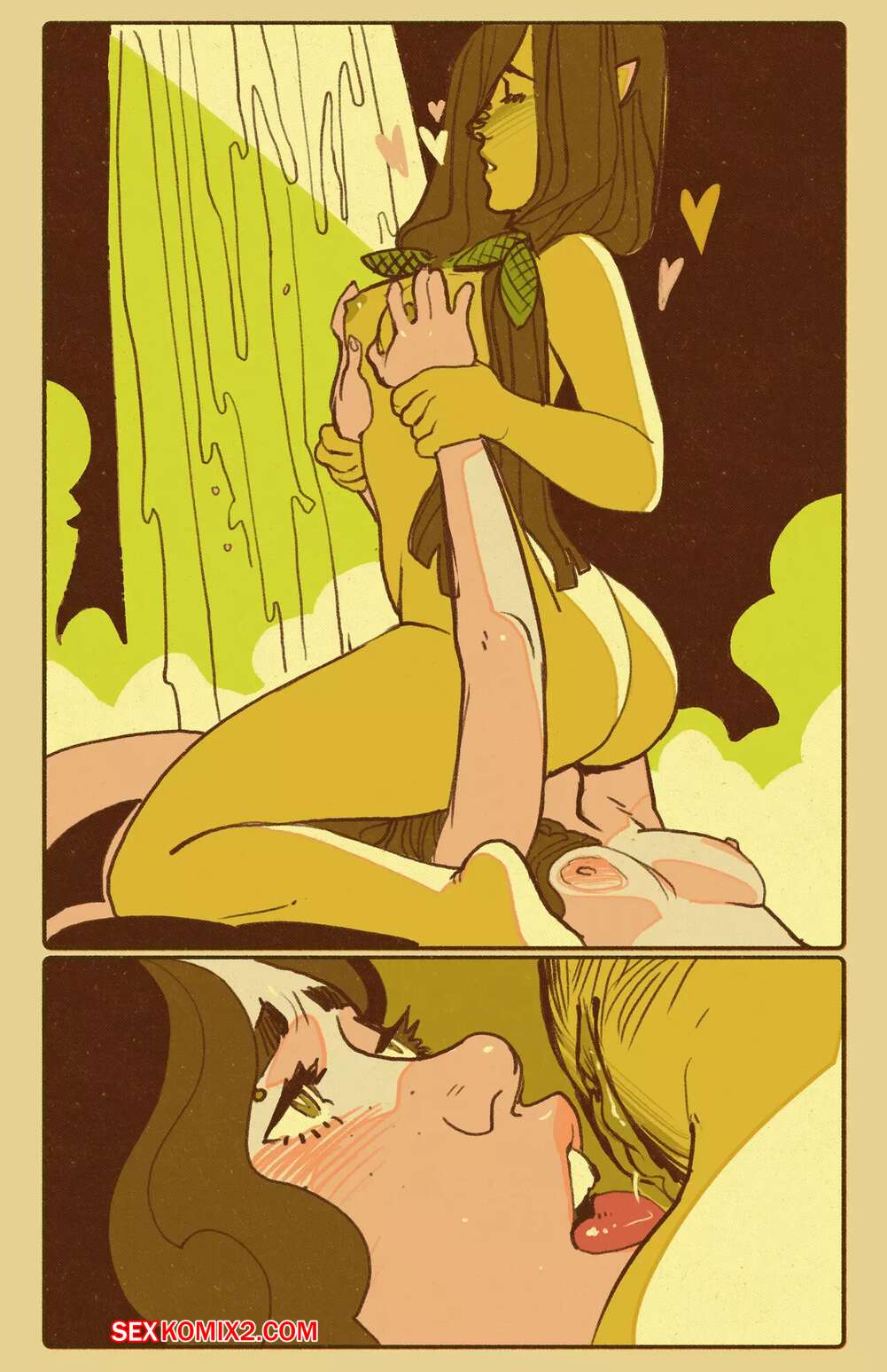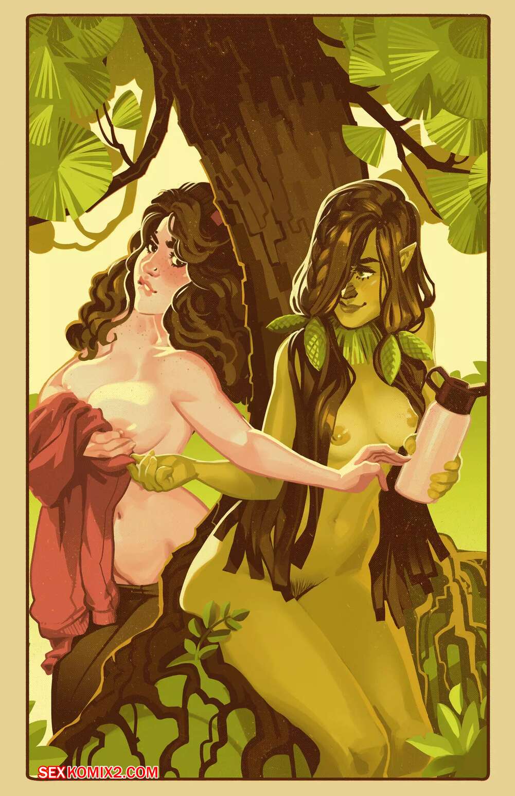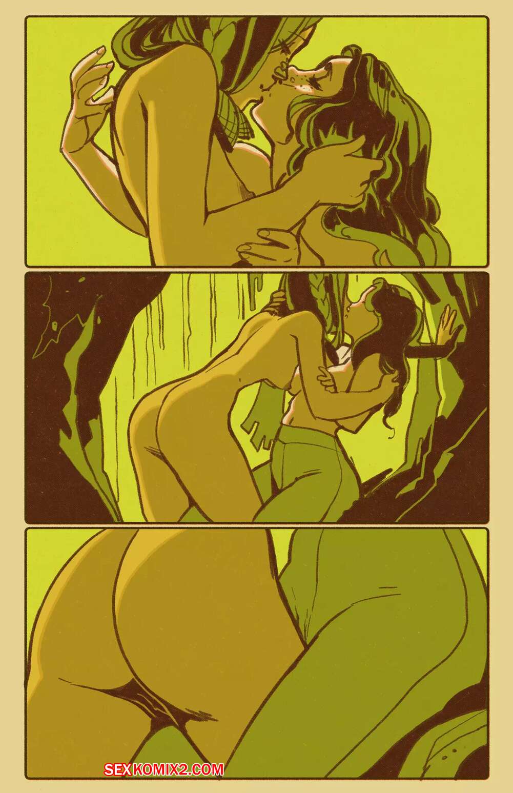 Порно комикс История любви. Плющ и Сосна Подборка артов и картинок с двумя горячими сисястыми красотками с большими сиськами. Они очень возбудились при виде друг друга и стали хорошенько ласкать друг дружку, после чего занялись страстной лесбийской еблей.