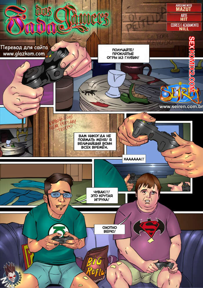 Порно комикс Фея геймеров Два парня играли в игру и перед ним из телевизора появилась горячая блондинка из игры и она стала отсасывать их большие хуи. Сучка очень хотела ебаться, поэтому дала им хорошенько выебать себя в пизду и задницу.