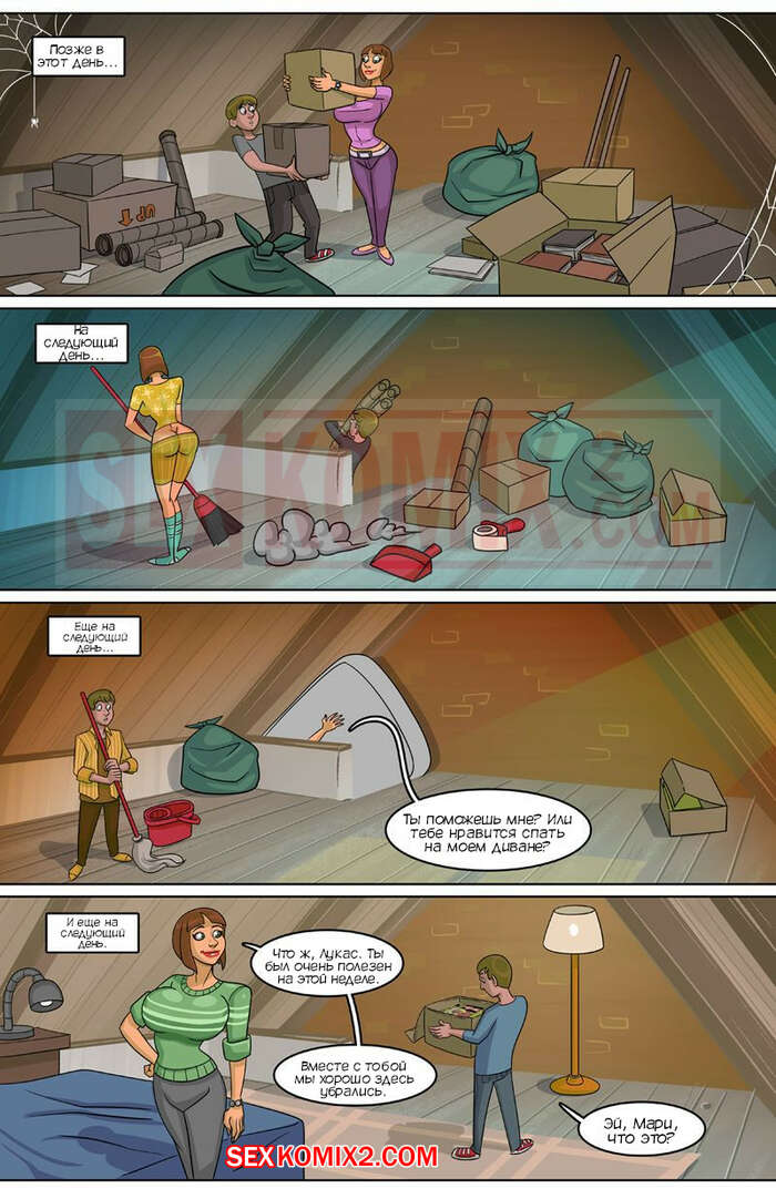 Порно комикс Мария. Marie. John North. TYFComics Парень приехал жить к своей тете. Он увидел ее голой в душе и стал дрочить свой больший хуй, от чего обильно кончил. Милфа поднялась к парню в комнату и они стали играть в секс игру.