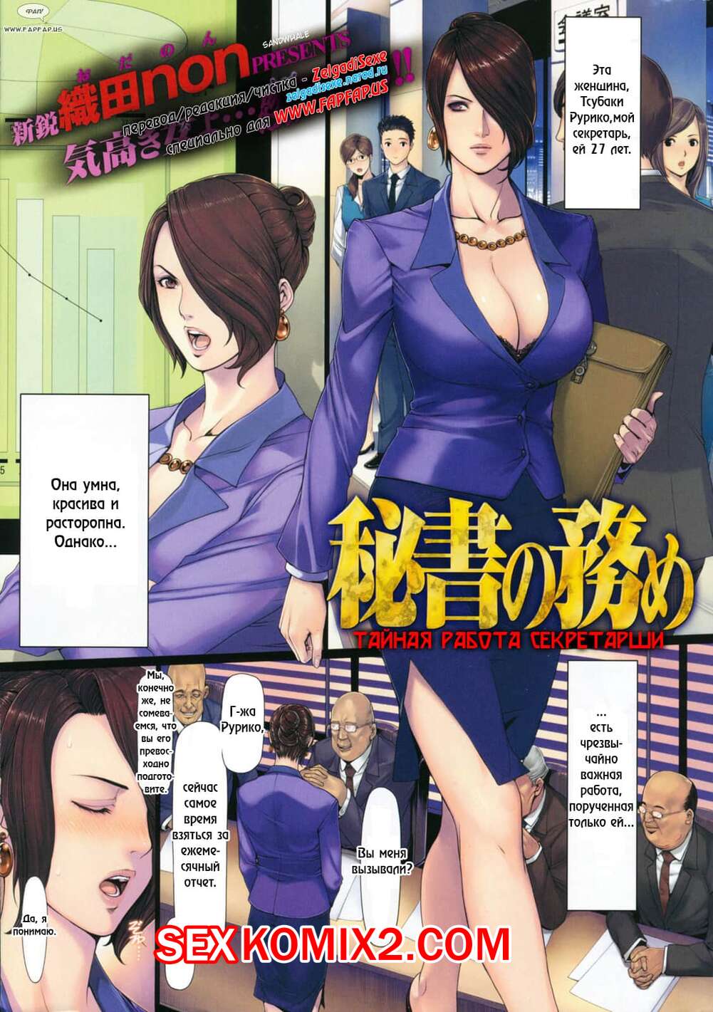 Порно комикс Тайная работа секретарши. Secretarys Secret Working Горячая сисястая красотка брюнетка работает секретаршей в офисе. С ней решили повеселиться несколько парней и дали ей отсосать свои большие хуи, а затем хорошенько ее выебали.