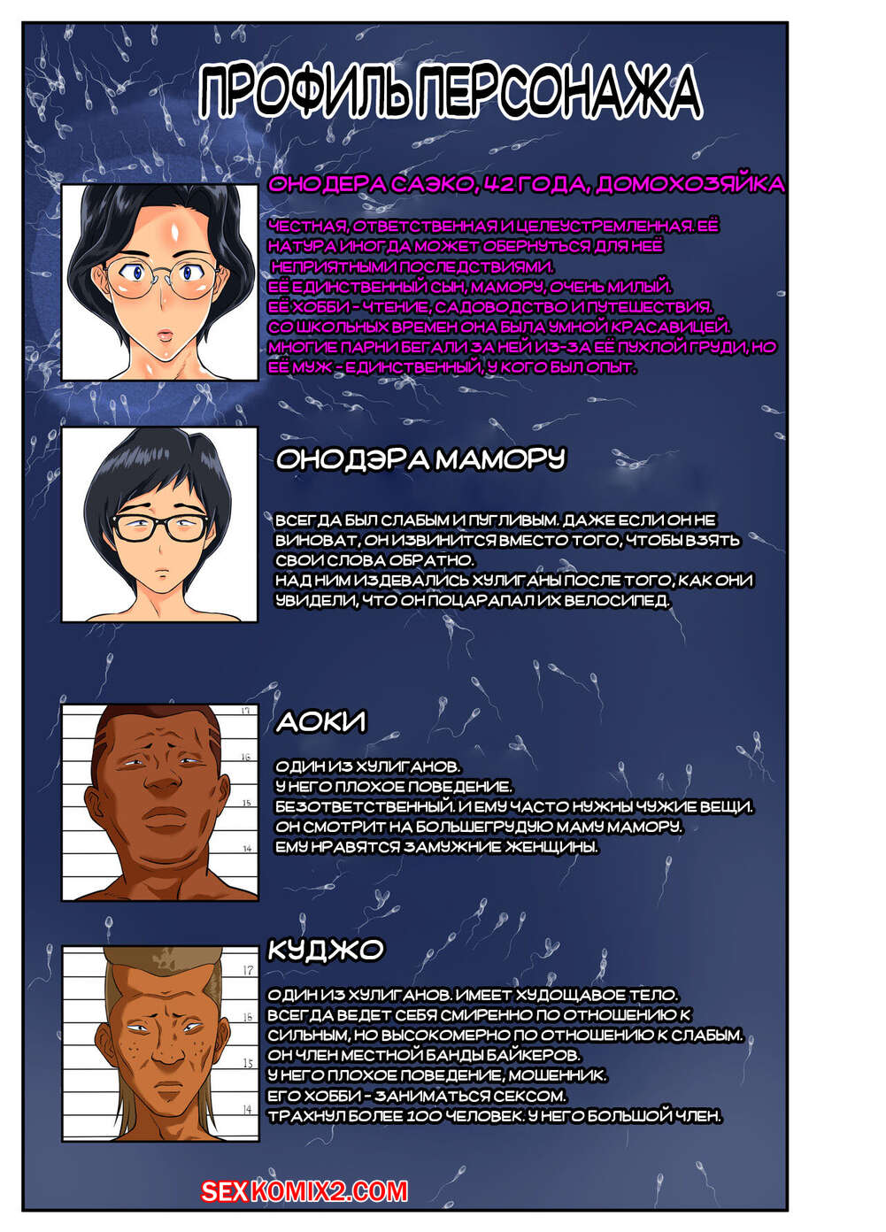 Порно комикс Musuko no Migawari ni Ijimekko ni Karada o Sashidasu Kimajime de Okatai Bakunyuu Mama Черные парни стали домогаться до мамаши милфы молодого паренька. Они раздели ее и дали ей отсосать свои большие хуи, а затем хорошенько выебали ее в пизду и задницу.