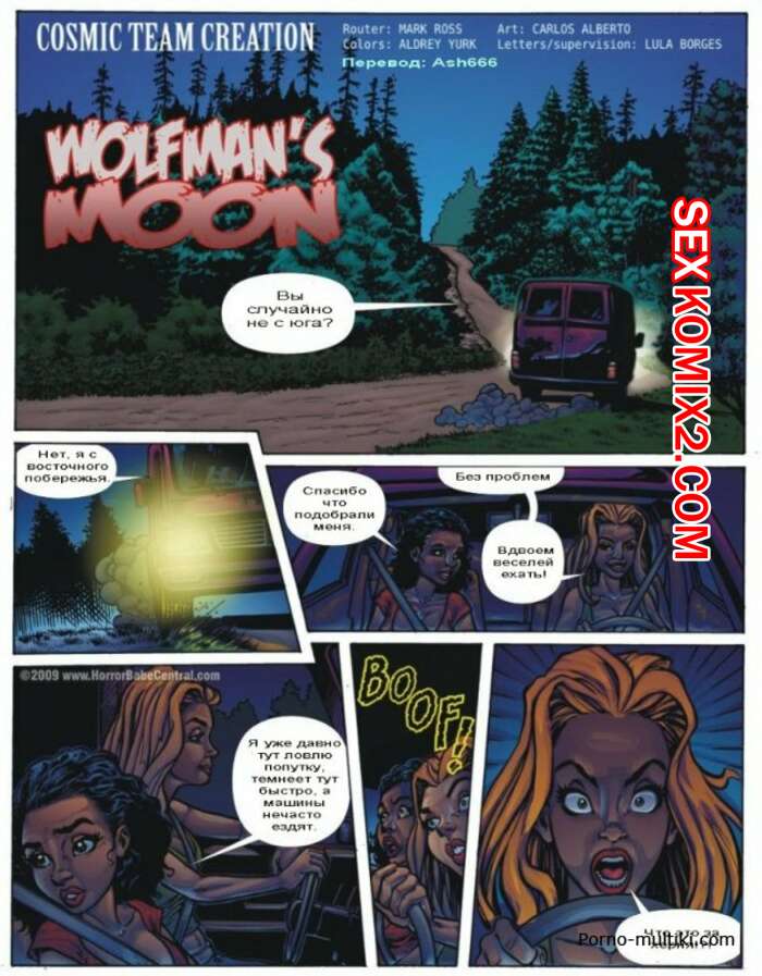 Порно комикс Оборотни Горячие сисястые красотки ехали ночью по лесу и на них напали оборотни. Они схватили красоток и раздели, после чего дали им отсосать свои большие хуи и хорошенько их выебали.