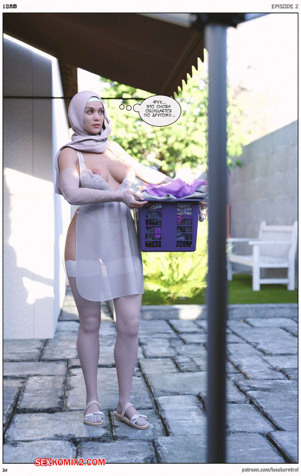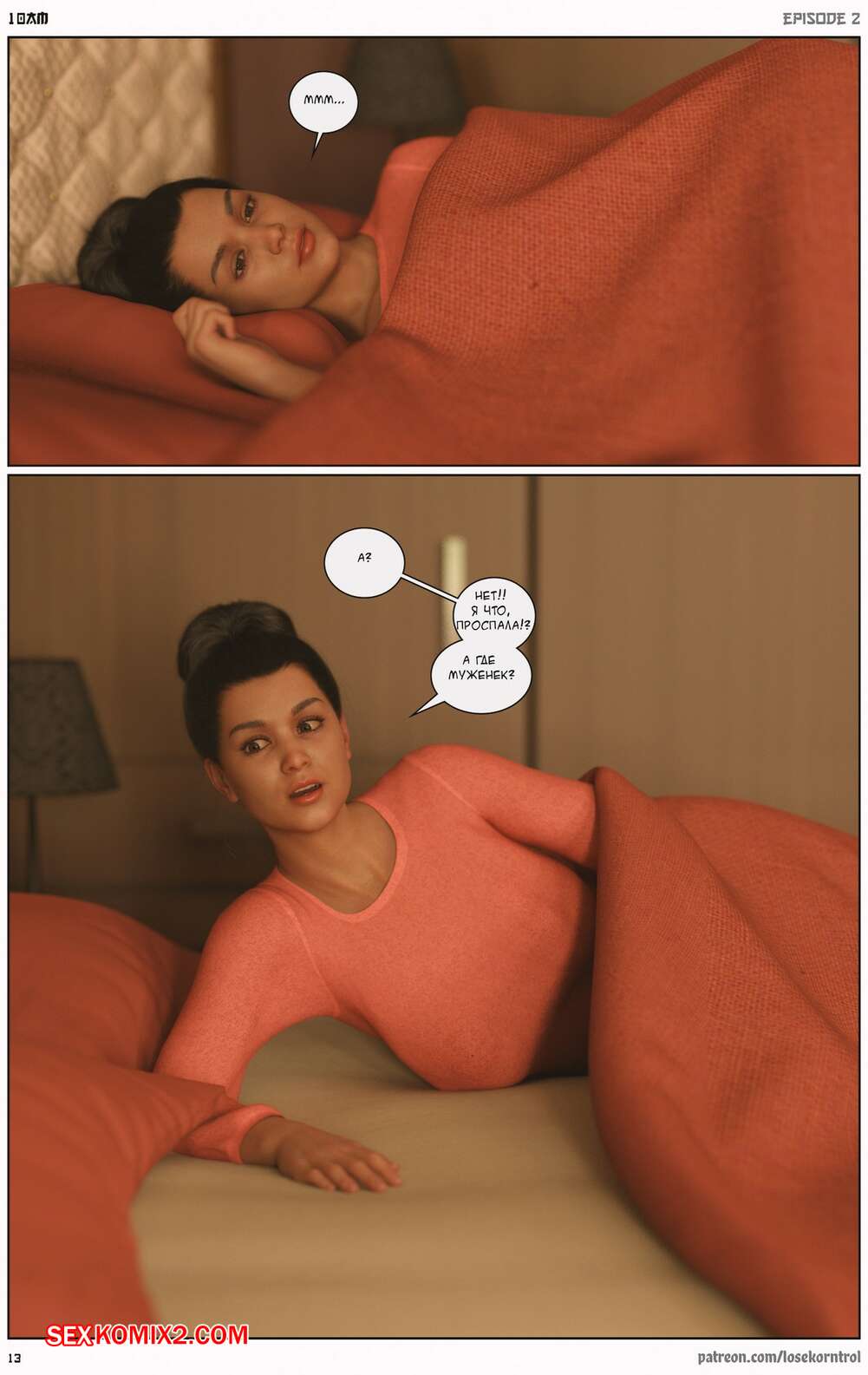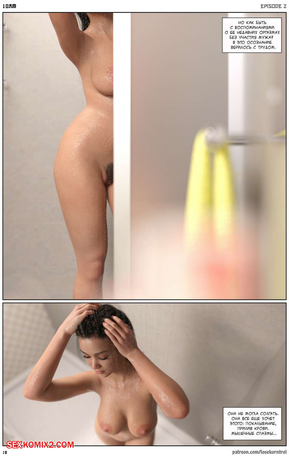 Порно комикс 10 утра. Часть 2. 10 am. LoseKorntrol Горячая сисястая милфа брюнетка устала просто дрочить свою пизденку, ведь ее муж не обращает на нее внимания. Она заказала себе большой черный страпон, чтобы хорошенько себе трахать самой.