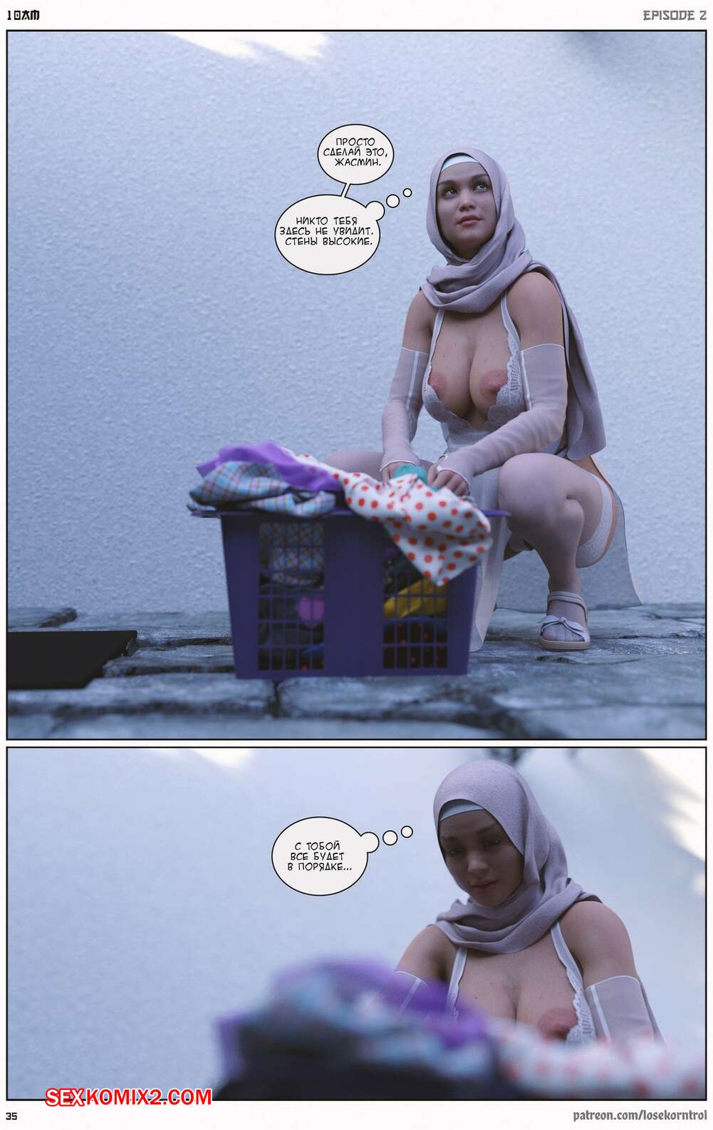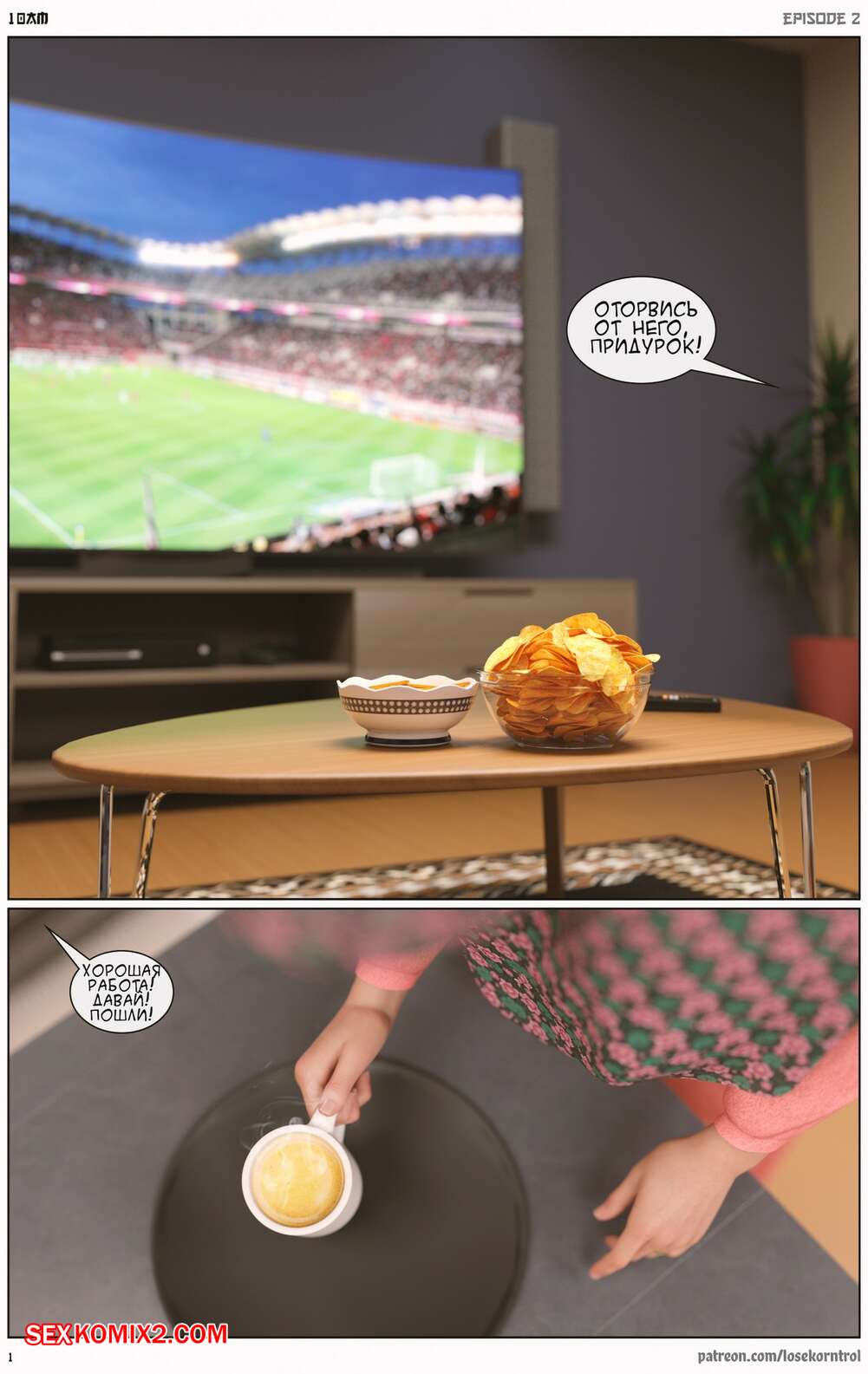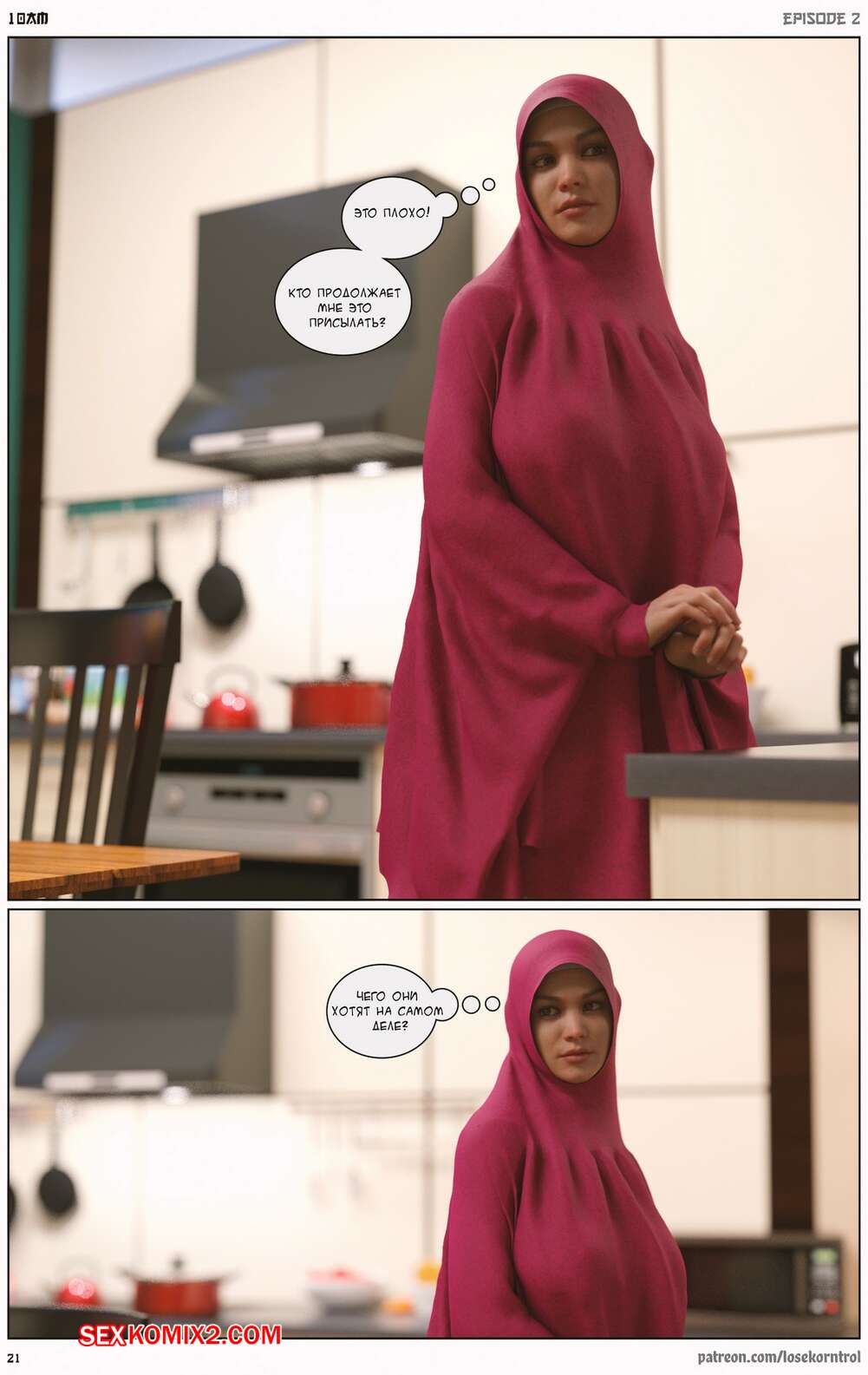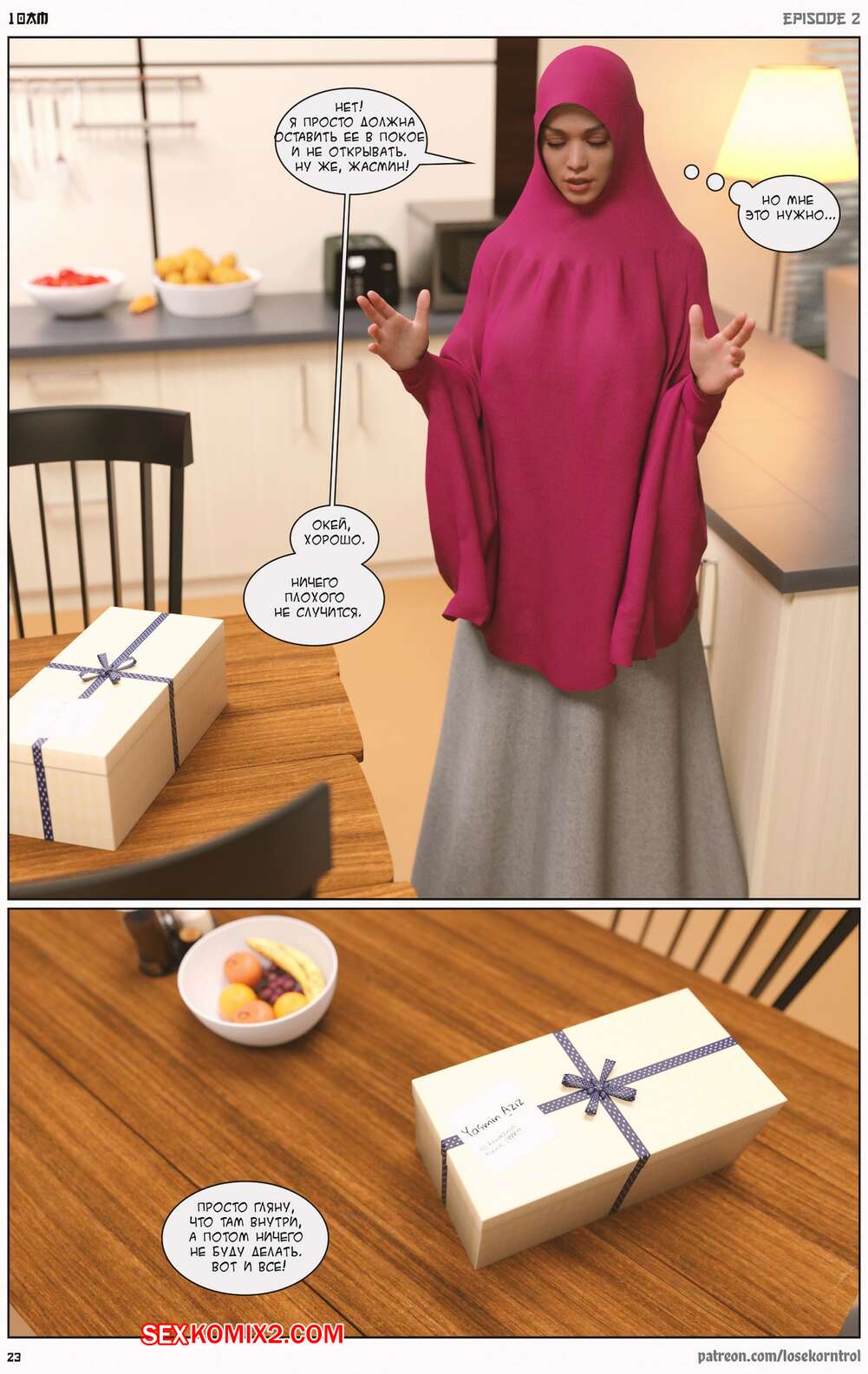 Порно комикс 10 утра. Часть 2. 10 am. LoseKorntrol Горячая сисястая милфа брюнетка устала просто дрочить свою пизденку, ведь ее муж не обращает на нее внимания. Она заказала себе большой черный страпон, чтобы хорошенько себе трахать самой.