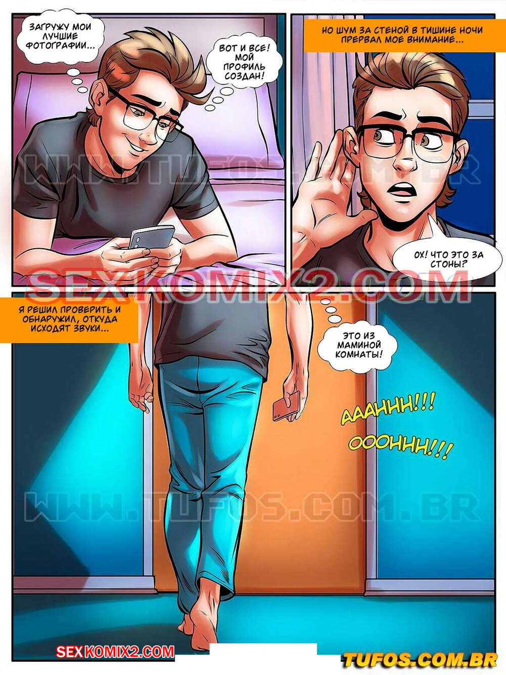 Порно комикс Лакомство заучки. Часть 24. Три женщины в одной постели. Tufos Парень проснулся рано утром и отправился в ванну. Возвращаясь к себе в комнату, он услышал стоны из спальни своей мамы. Открыв дверь, он увидел свою мамку милфу и двух ее подруг, которые занимались лесбийским сексом.