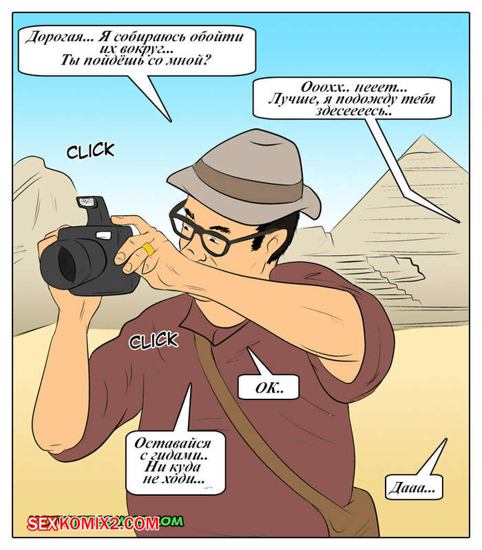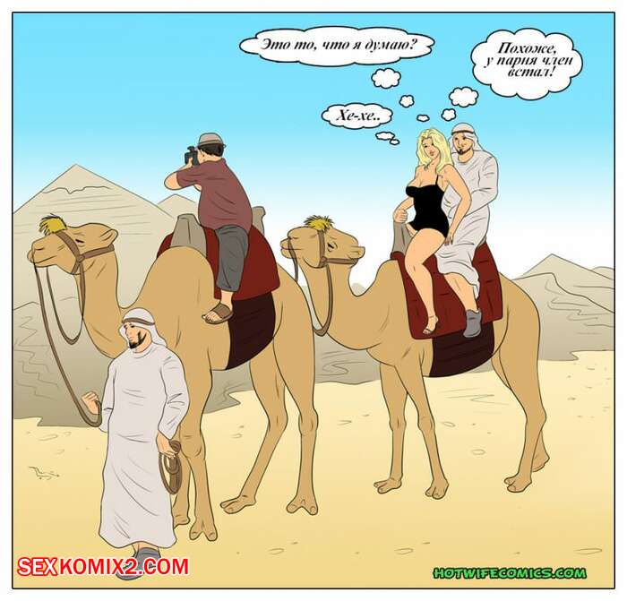 Порно комикс Поезка в Египет Горячая сисястая милфа блондинка отправилась со своим мужем в Египет. Пока мужик наслаждался пирамидами, его жена решила повеселиться с двумя арабами, отсосав у них и занявшись страстной еблей.